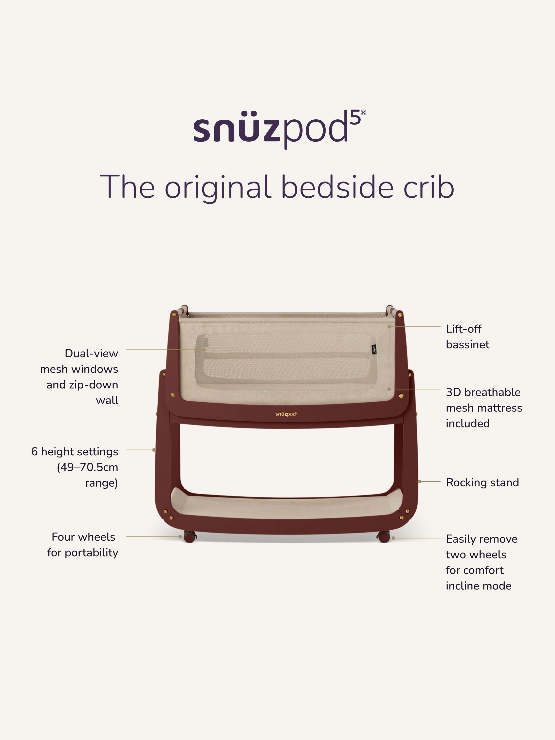 SnüzSnüzPod 5 Bedside Crib, Rouge