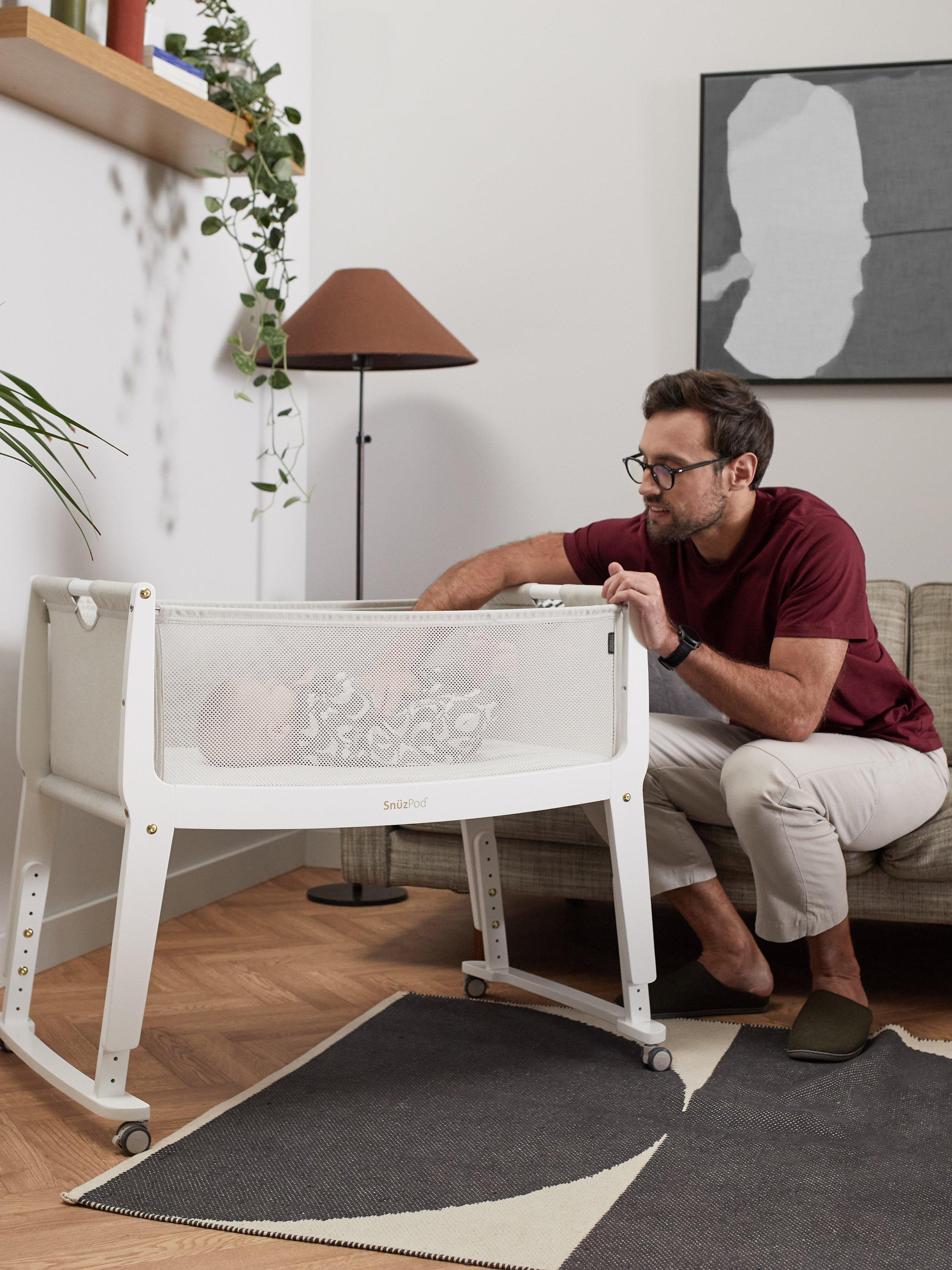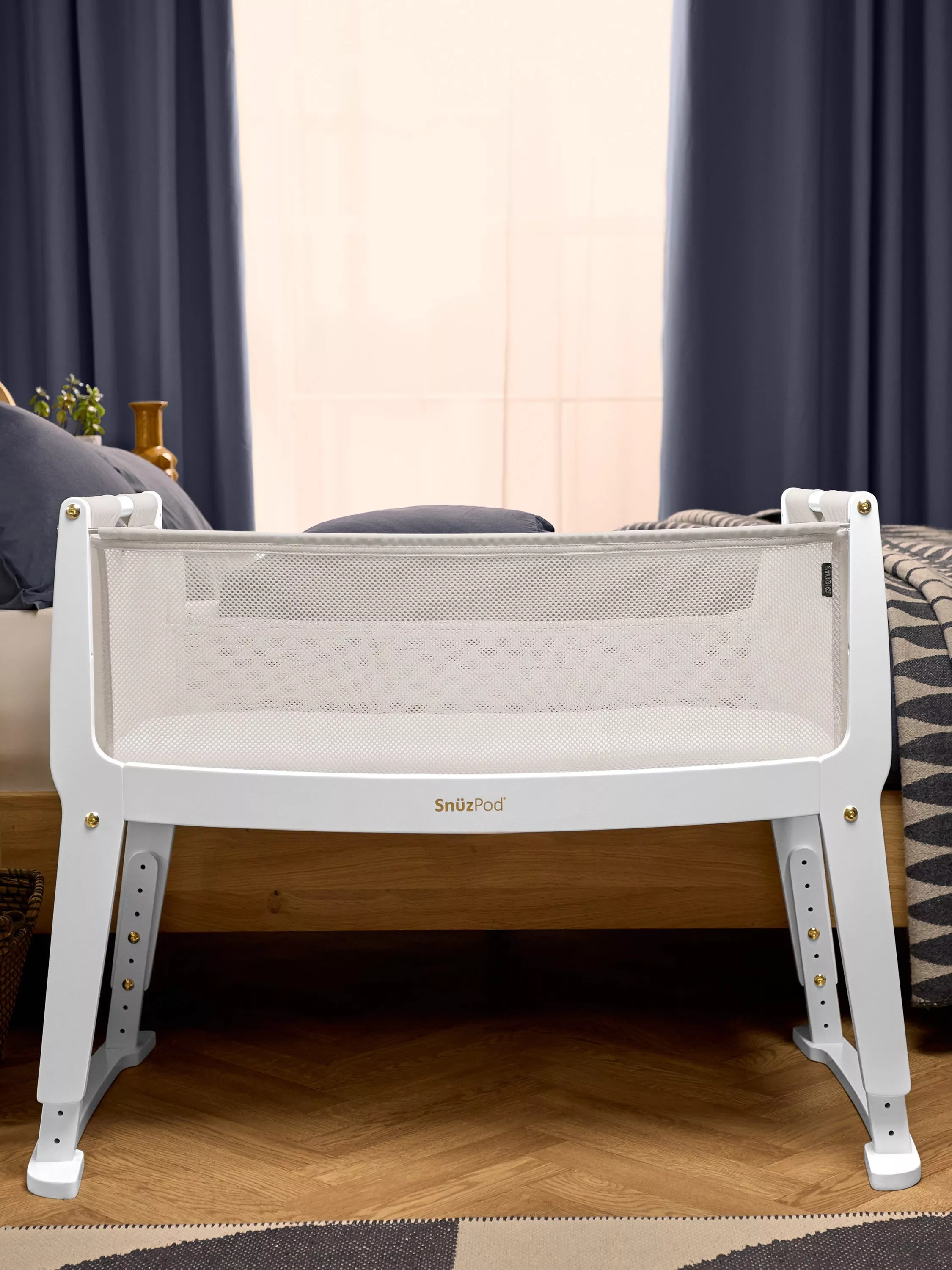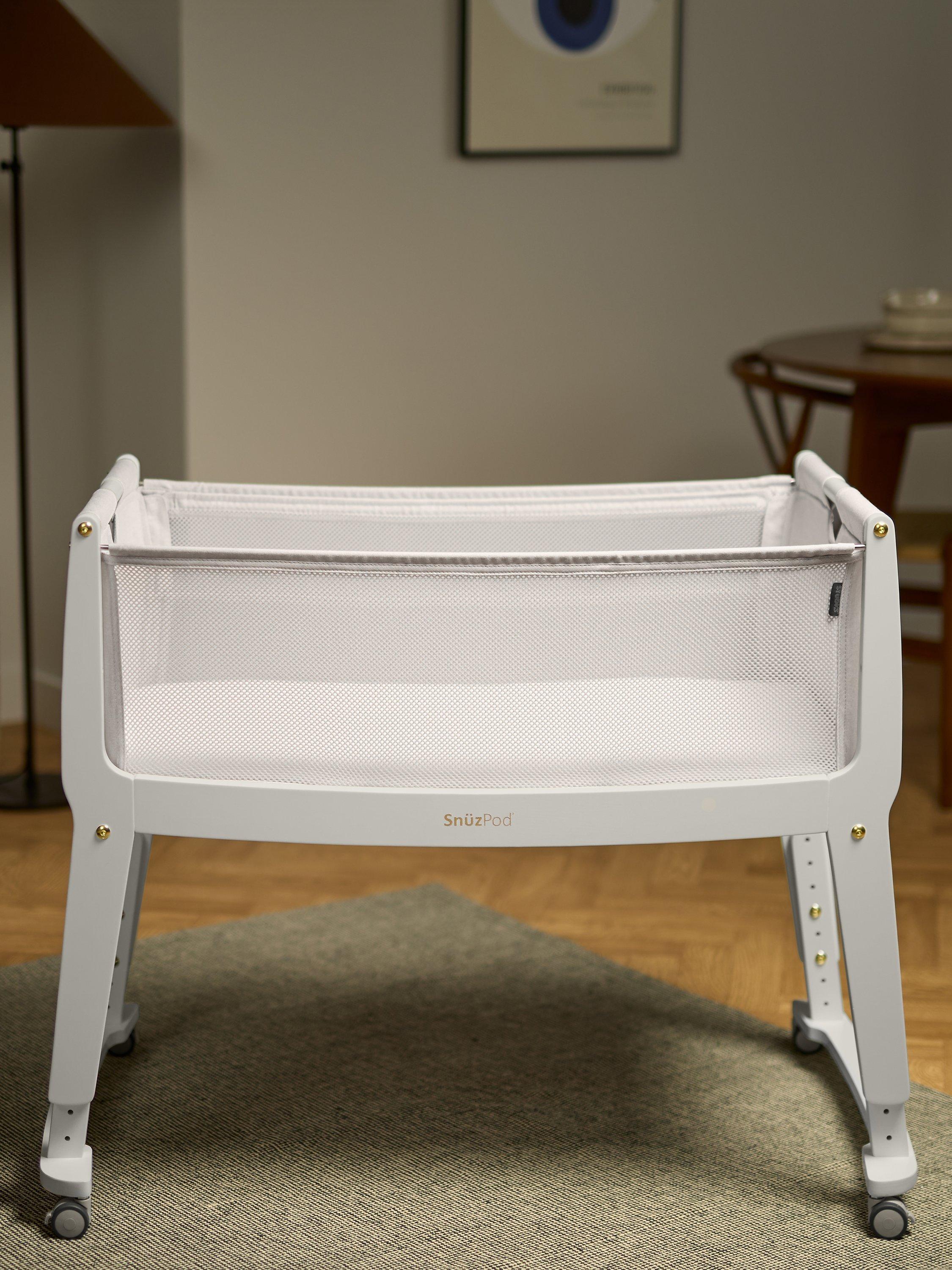 Minimalist in design, bold in style, and practical in action, the SnüzPod Studio bedside crib is made for the modern parent. It fits effortlessly into busy life, making sure your baby is always snug and close, whether it's daytime naps or nighttime rests.