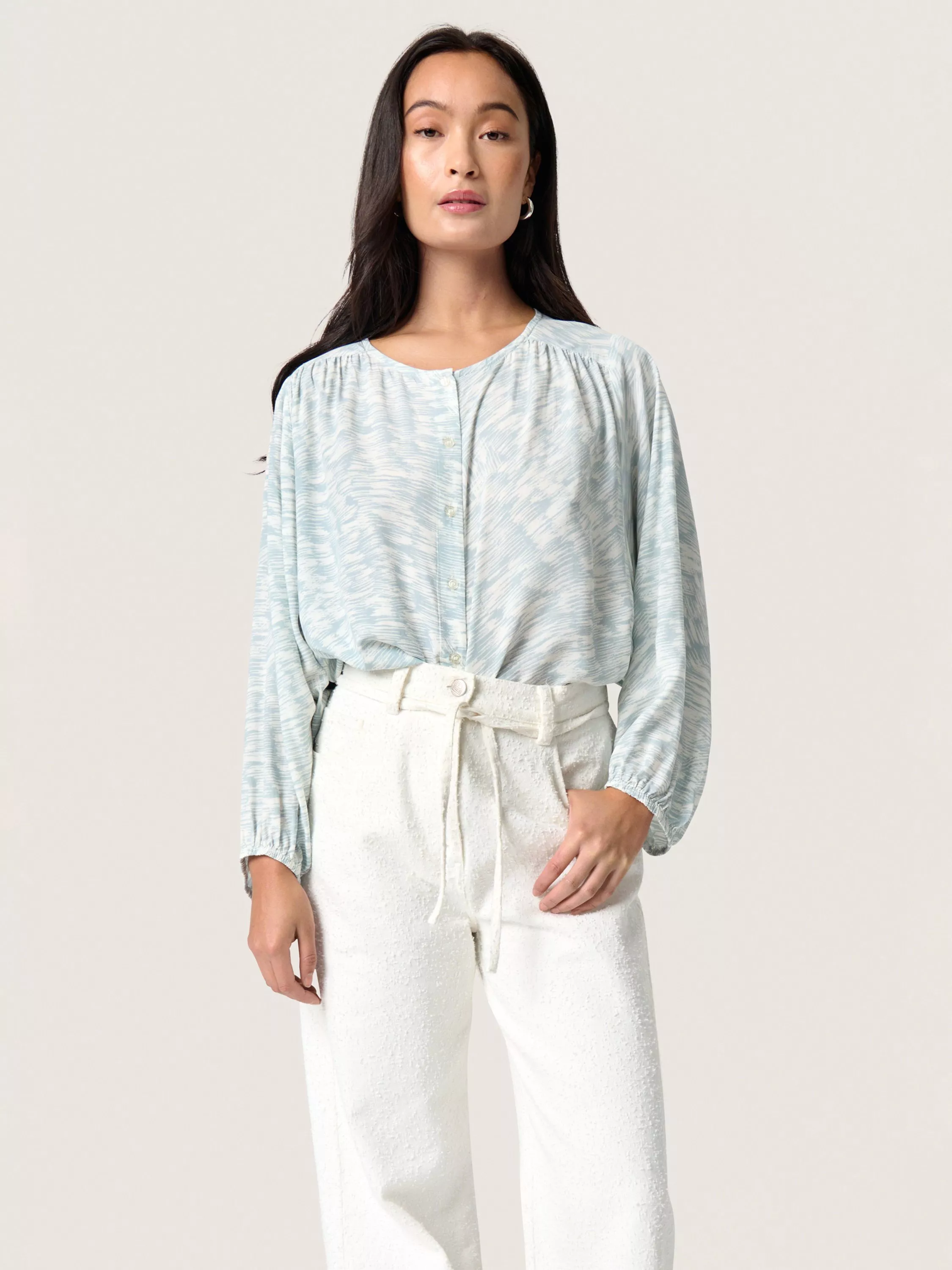 This beautiful blouse features a unique stroke print. It offers an elegant loose fit, perfect for casual days.