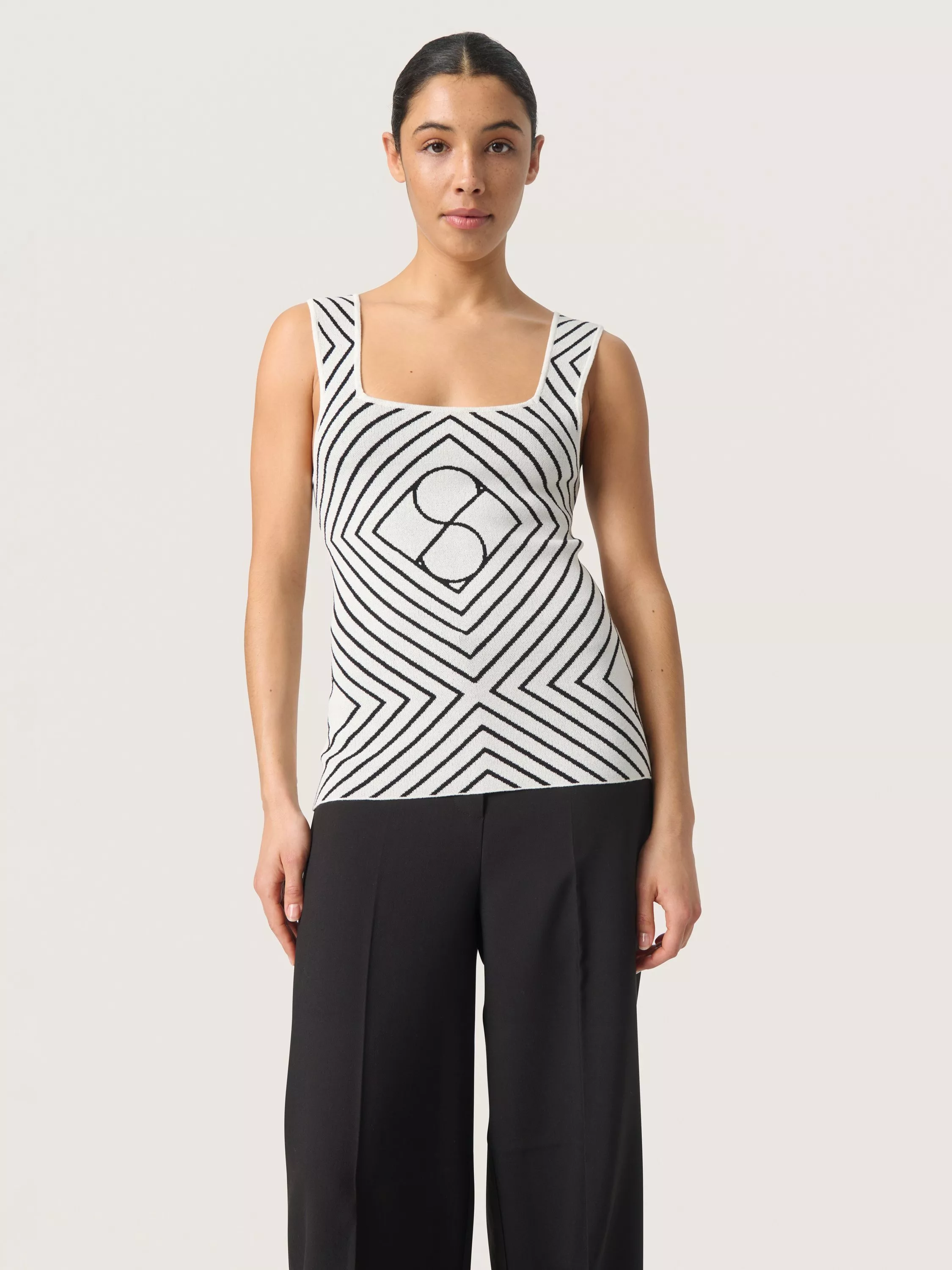 Soaked In LuxuryClare Monogram Stripe Knit Top, White/Multi