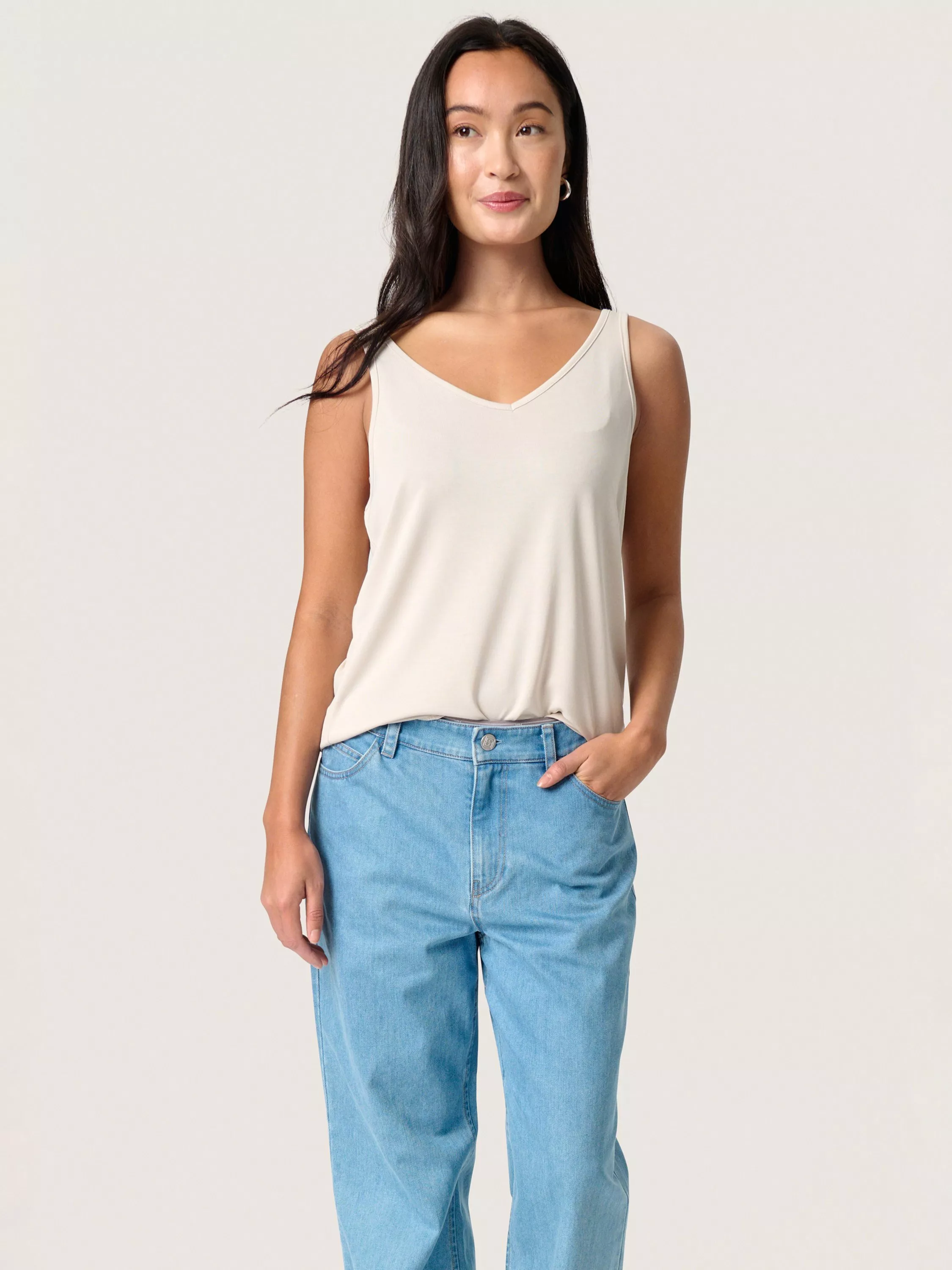Framed with a v-neckline and a sleeveless design, it is made from soft fabric that withstands creasing and is an everyday wardrobe essential.