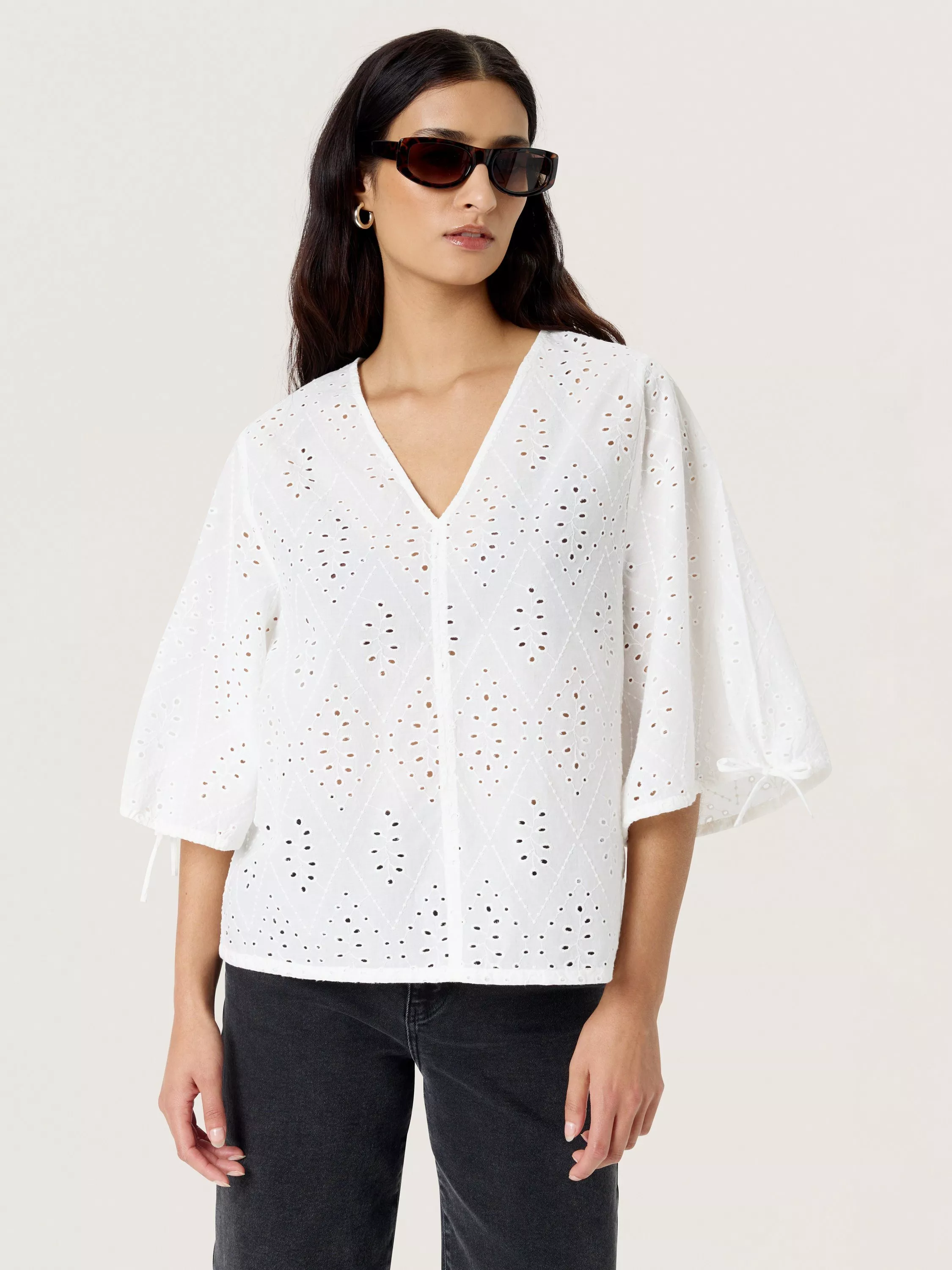 Featuring exquisite craftsmanship in 100% cotton with a woven texture, the Joella blouse from Soaked In Luxury boasts a chic look and pure comfort.