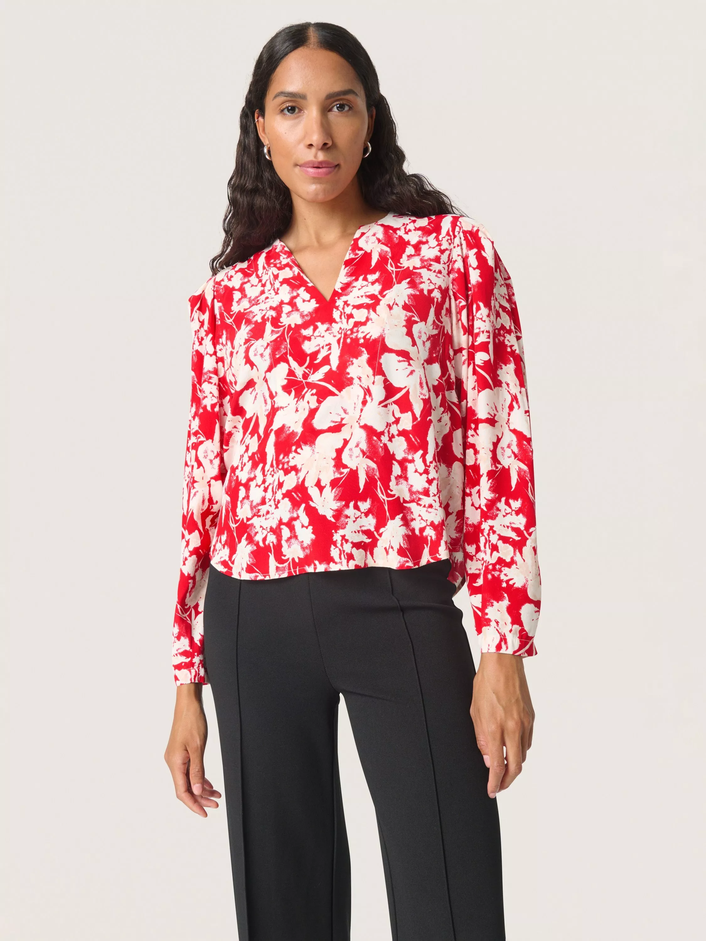 This blouse with a vibrant floral print adds a fresh and feminine touch to your outfit. Featuring a light V-neckline and long sleeves, it offers a stylish and comfortable look. Perfect with jeans or skirts for a sophisticated everyday style.