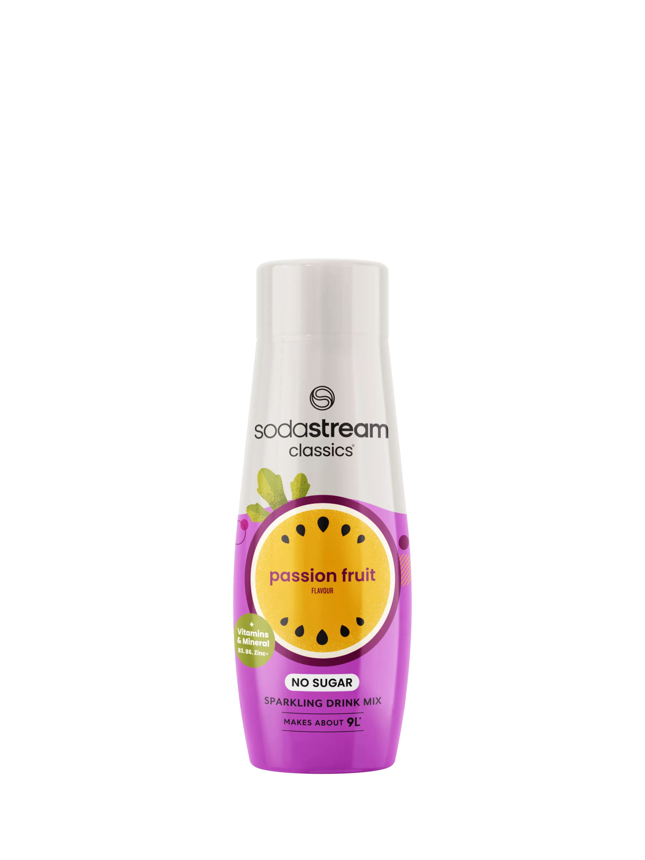 Bring fun and joy to your sparkling water experience with SodaStream® No Sugar Passion Fruit. Perfectly refreshing any time of day, this Classics drink mix brings fun and freshness to sparkling water for a personalised experience at home. Low in calories, with added vitamins, zero sugar and a deliciously fruity flavour.