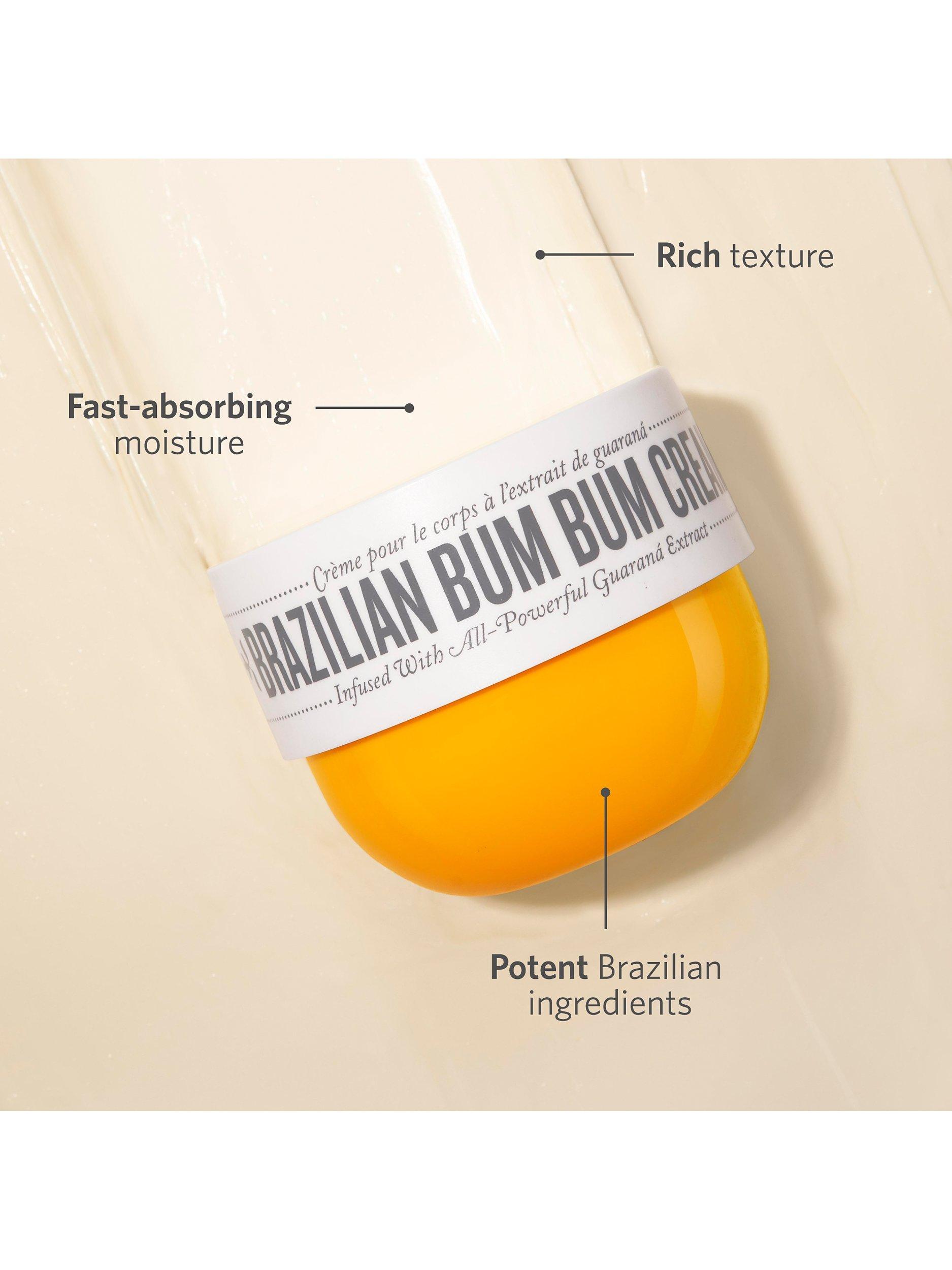 Our iconic Brazilian Bum Bum Cream for amazing skin smoothing with a hint of shimmer, our Brazilian 4 Play Shower Cream-Gel for clean, super-soft skin, and our Brazilian Crush Cheirosa '62 Hair & Body Fragrance Mist for a deeply irresistible head-to-toe scent.