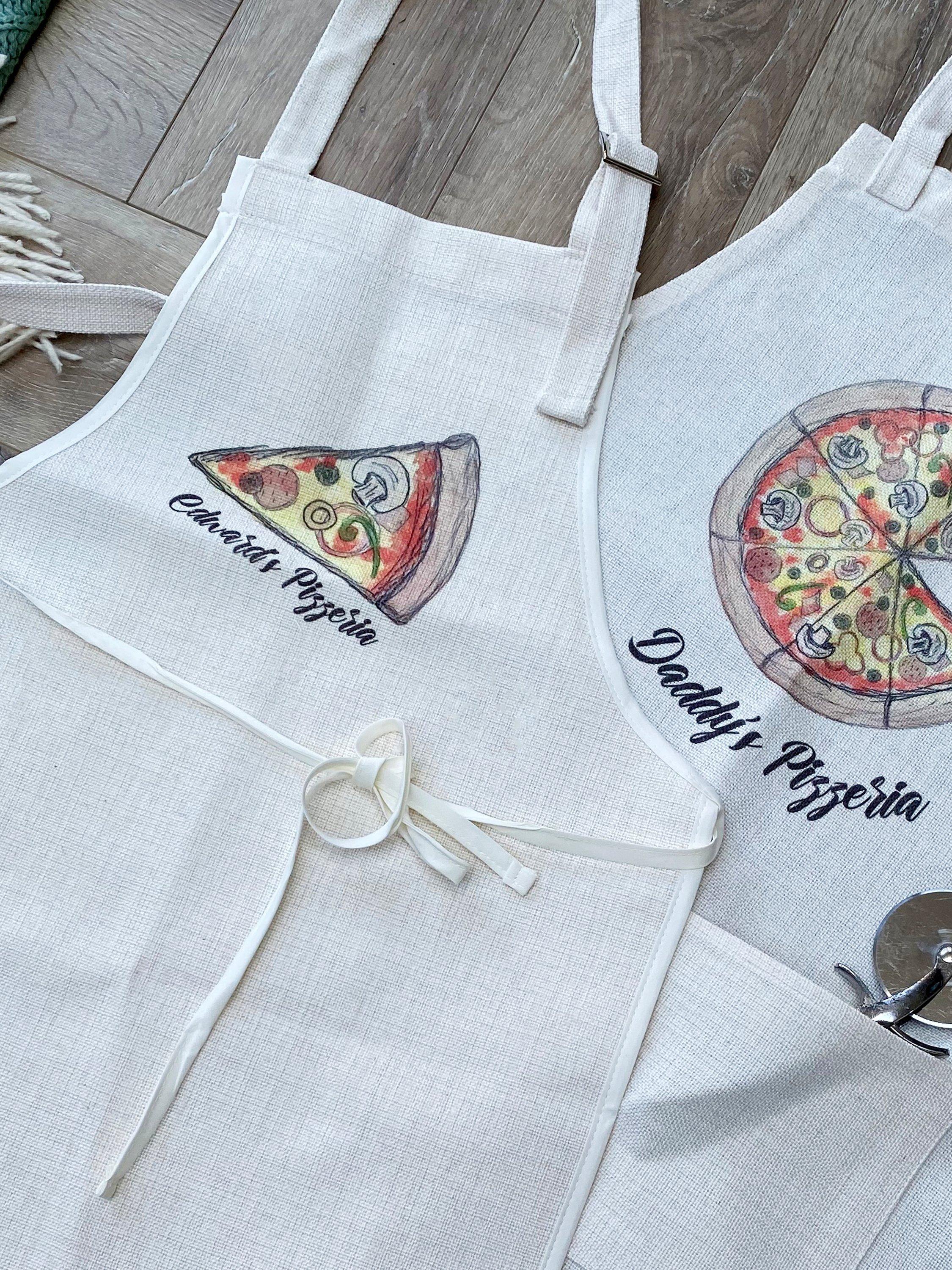 Get creative in the kitchen and twin with Dad in style with these adorable pizzeria personalised aprons. Whether its a spicy pepperoni or classic margarita, these aprons will help you cook up the perfect pizza in Daddy and Me's Pizzeria.