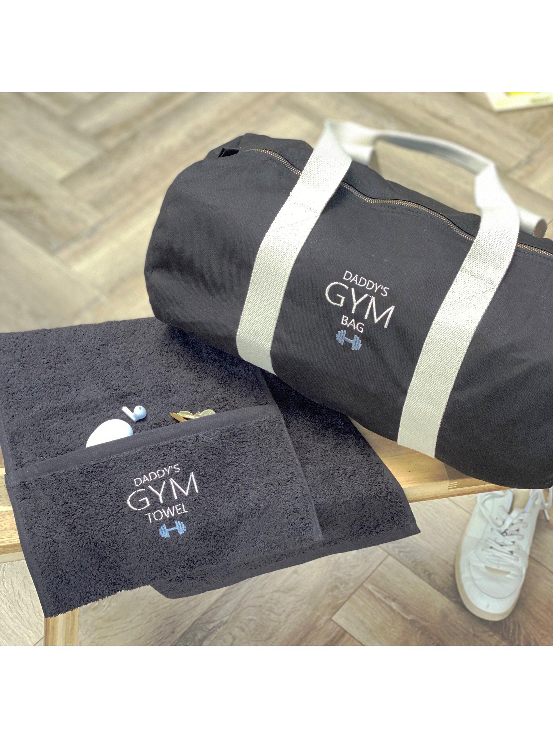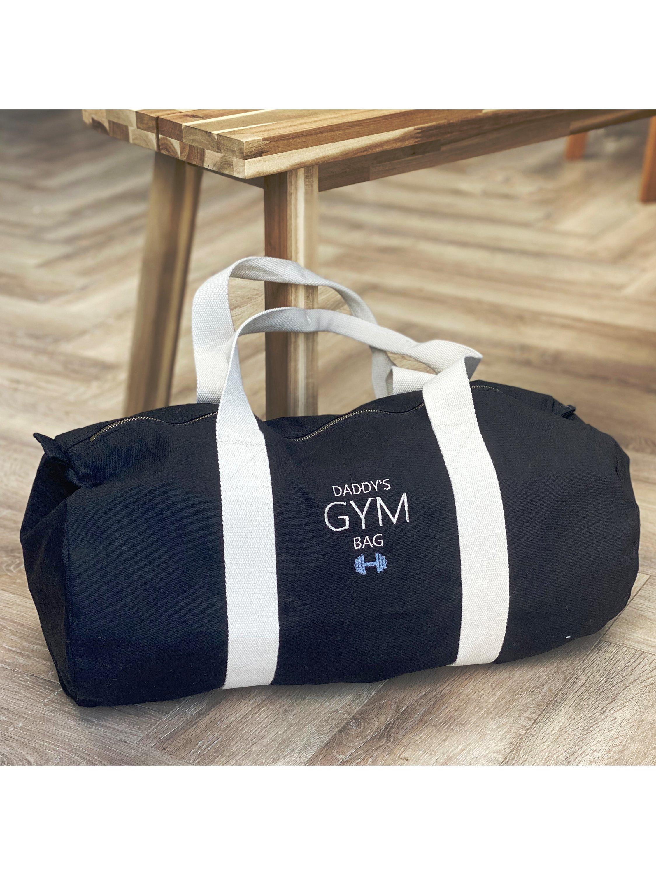 A fun and quirky personalised holdall embroidered to make a cool barrel bag into your gym bag. A great gift for a gym lover! This cool barrel bag makes going to the gym easy and stylish. This cotton duffel bag is embroidered with a name, message and a weight logo. It is a great gift for a husband who loves going to the gym or a friend who is always counting reps.