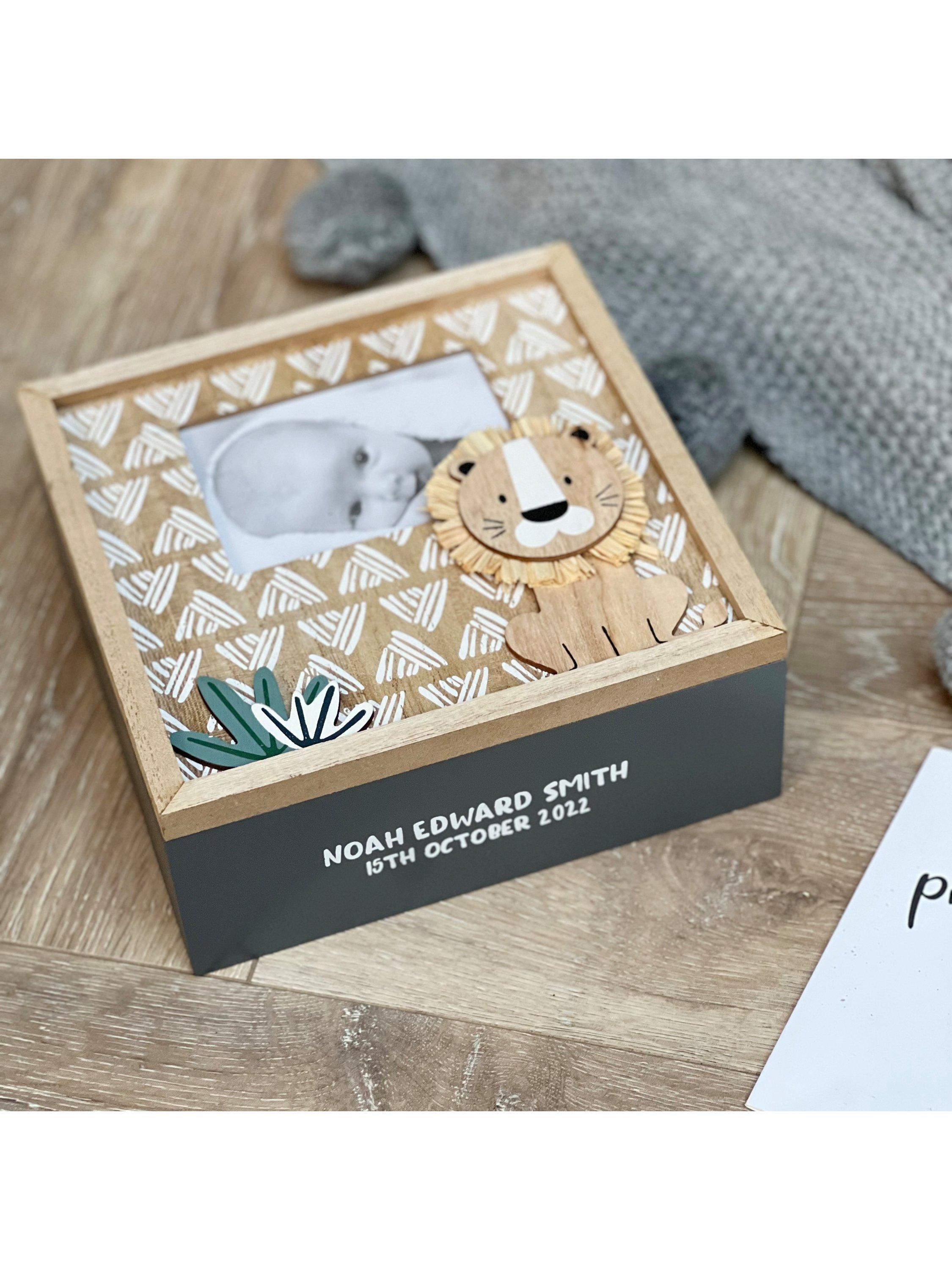 With a sweet safari design and a slot to insert your own photograph, this box is the perfect place to store those photos, cards and scan images to remember those special first few months of your little one's life.