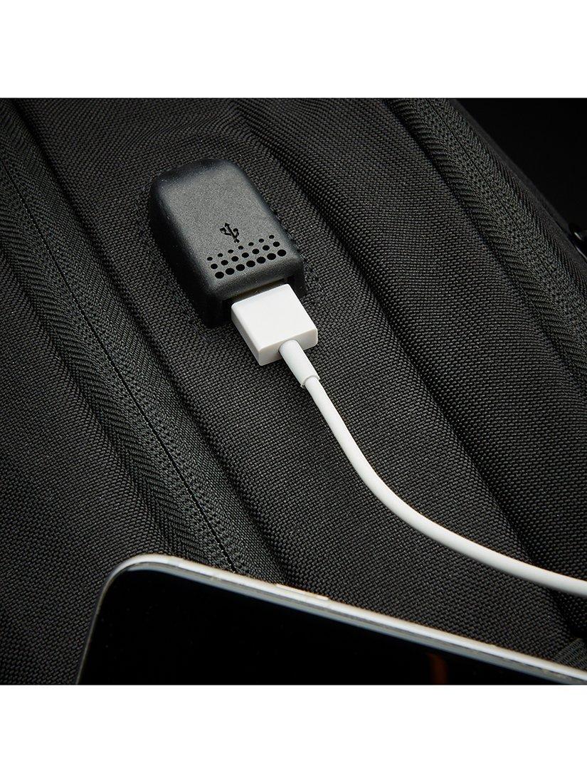 An RFID protection pocket helps secure personal data encoded on your credit cards, IDs and passports, and the fully padded 15.6" laptop compartment with lockable zippers keeps your bigger essentials safe. The external USB port makes charging your phone on the go a cinch too.