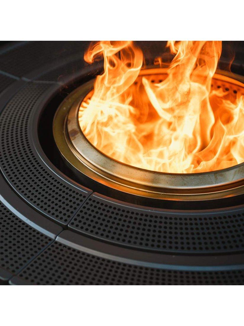 Made of powder-coated steel and durable UV-resistant outdoor fabric, Surround transforms your firepit into a cosy centrepiece with a safe, stylish all-around barrier that protects your loved ones and your firepit. Surround's table top is made with perforated steel that helps minimise the heat transfer from your firepit to Surround.