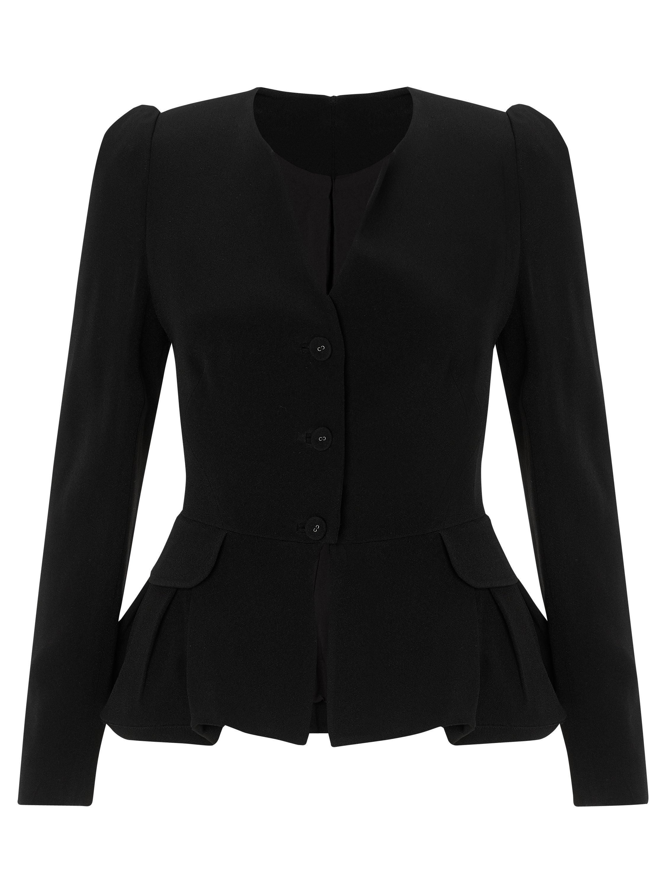 Boasting subtly puffed and pleated shoulders, this directional tailored jacket also features a tactile round neckline, a button down front fastening and a highly on-trend peplum hem for the most polished fit.