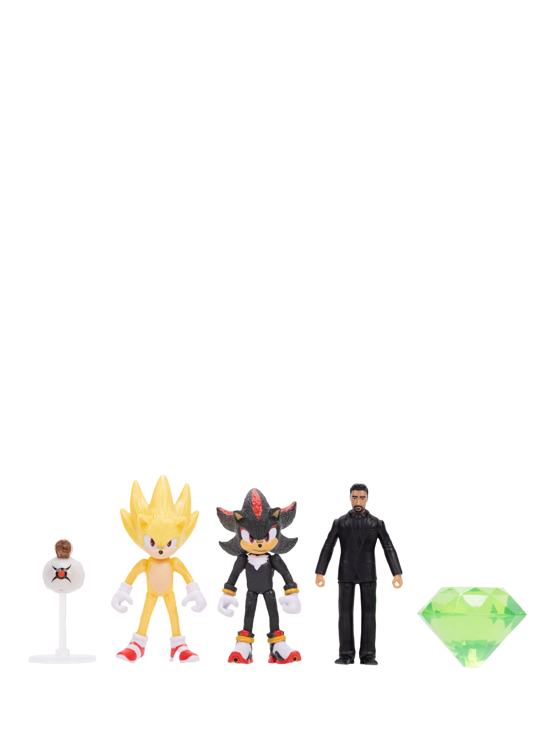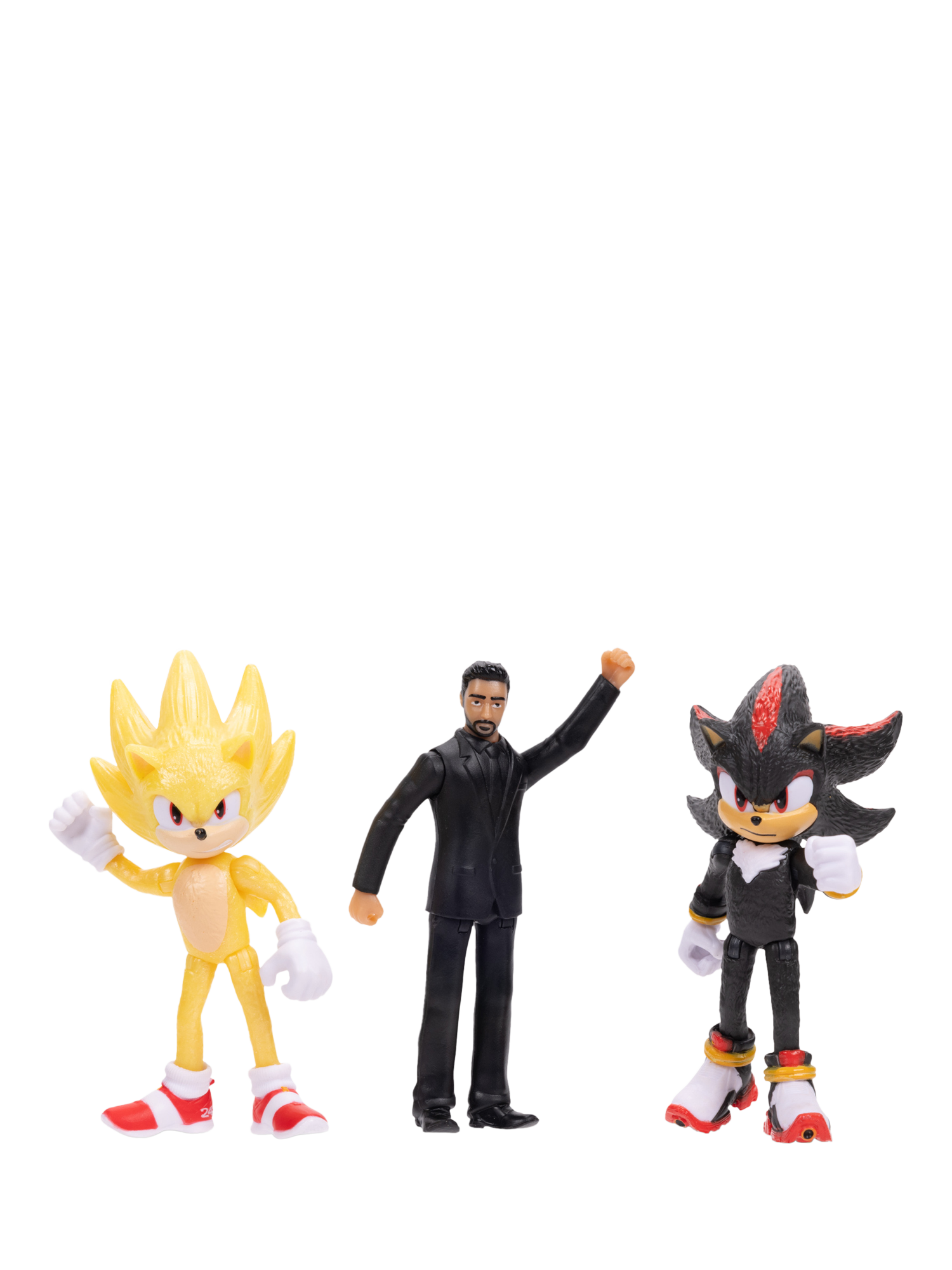Inspired by the Sonic the Hedgehog 3 Movie, this gift pack includes 2.5-inch (6cm) scale figures Super Sonic, Shadow and Agent Stone, plus a Burrito Drone accessory. Recreate action from the Sonic the Hedgehog 3 movie with these highly detailed figures. They work with the playset in the 2.5-inch Sonic figure world, sold separately.
