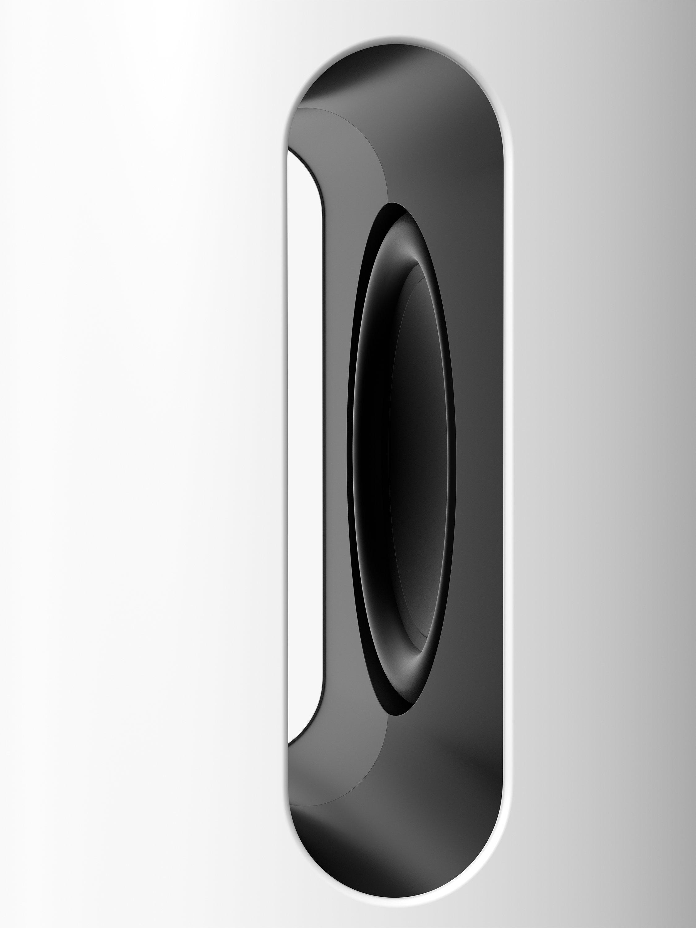 Within the acoustically sealed cabinet, both woofers face inward to create a force-cancelling effect that neutralises distortion.