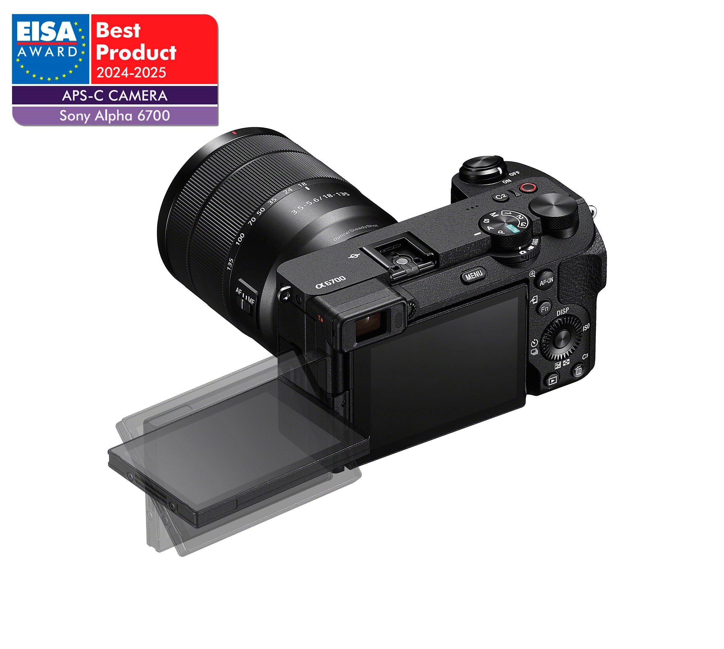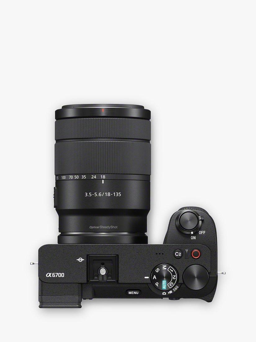 SonyA6700 Compact System Camera with 18-135mm OSS Lens, 4K Ultra HD, 26MP, OLED Viewfinder, Wi-Fi, Bluetooth, 3" Vari-Angle Touch Screen, Black