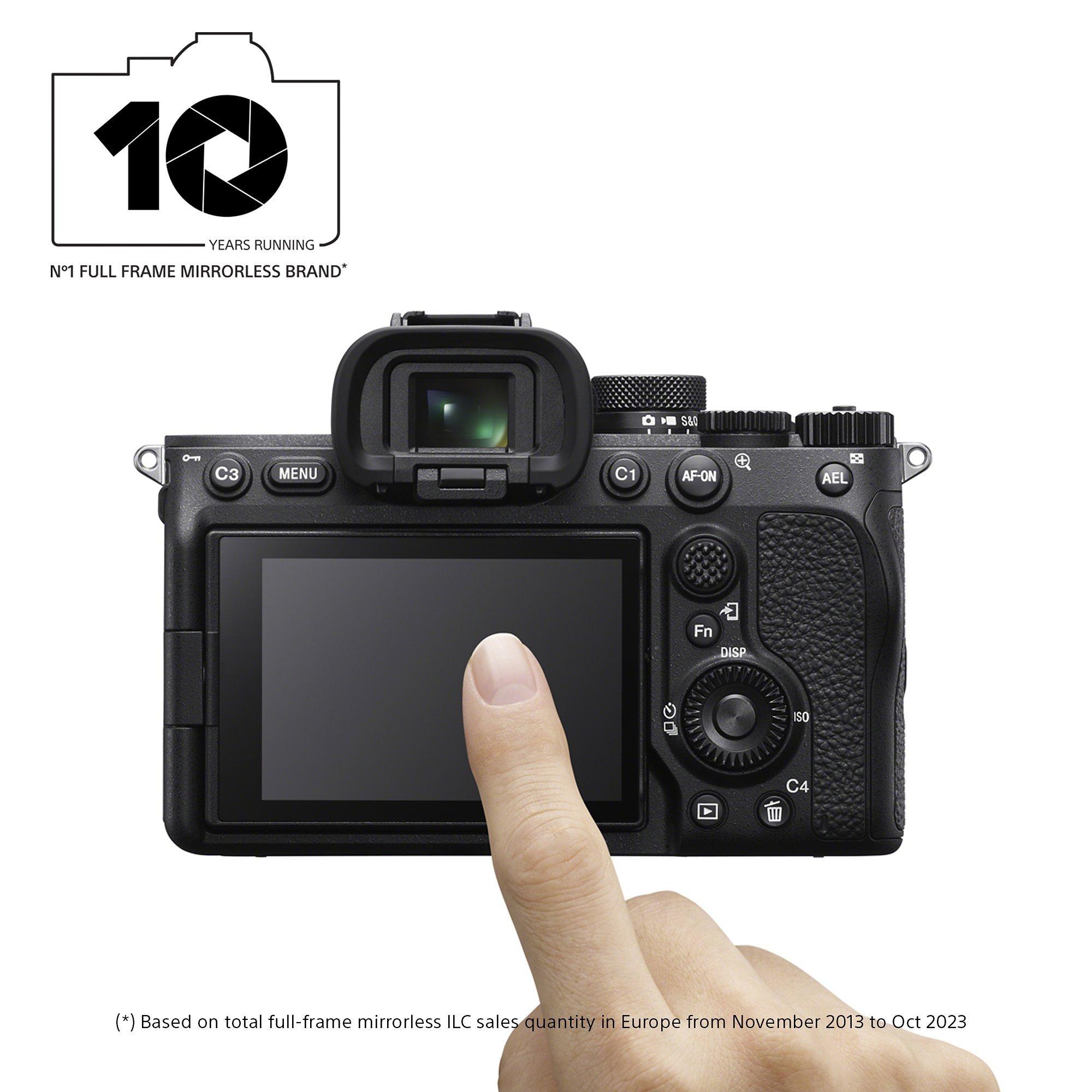 Sonya7 IV (Alpha ILCE-7M4) Compact System Camera, 4K Ultra HD, 33MP, Wi-Fi, Bluetooth, OLED EVF, 5-Axis Image Stabiliser & 3” Vari-Angle LCD Touch Screen, Body Only, Black