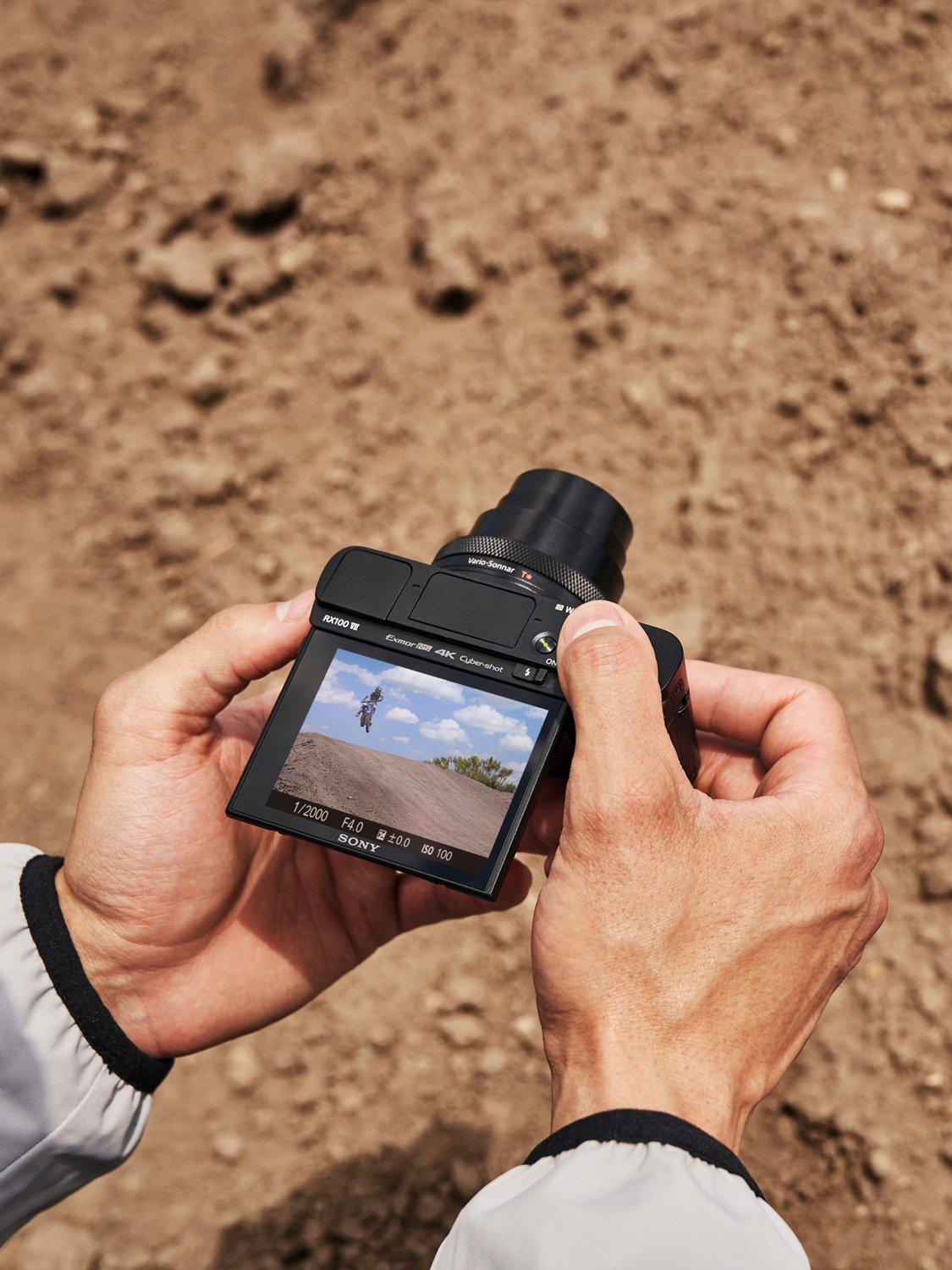 It’s the first of the RX100 series to support Real-time tracking so fast-moving subjects can be captured with as much clarity as non-moving subjects. Real-time Eye AF has been improved to detect and focus on your subject's eyes even if obscured, backlit, or looking down, and Real-time Eye tracking does the same for movie recordings.