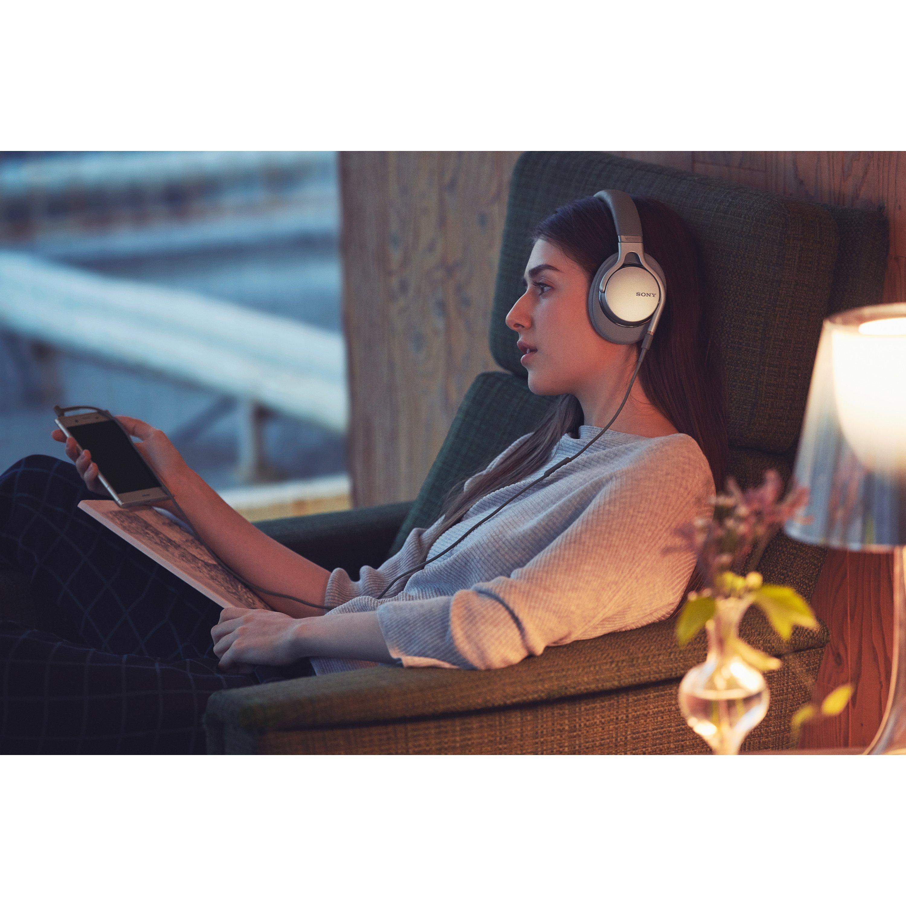 Sony's MDR-1AM2 High Resolution Audio supporting headphones produce an authentic sound that does justice to the studio sound of the original recording. Enjoy a soundstage of beautifully detailed ultra-highs and Heavyweight Bass. They stay comfortable over the long listen, can take hands-free phone calls with an inline mic/remote, and their premium and luxurious design folds flat for easy storage and travel.