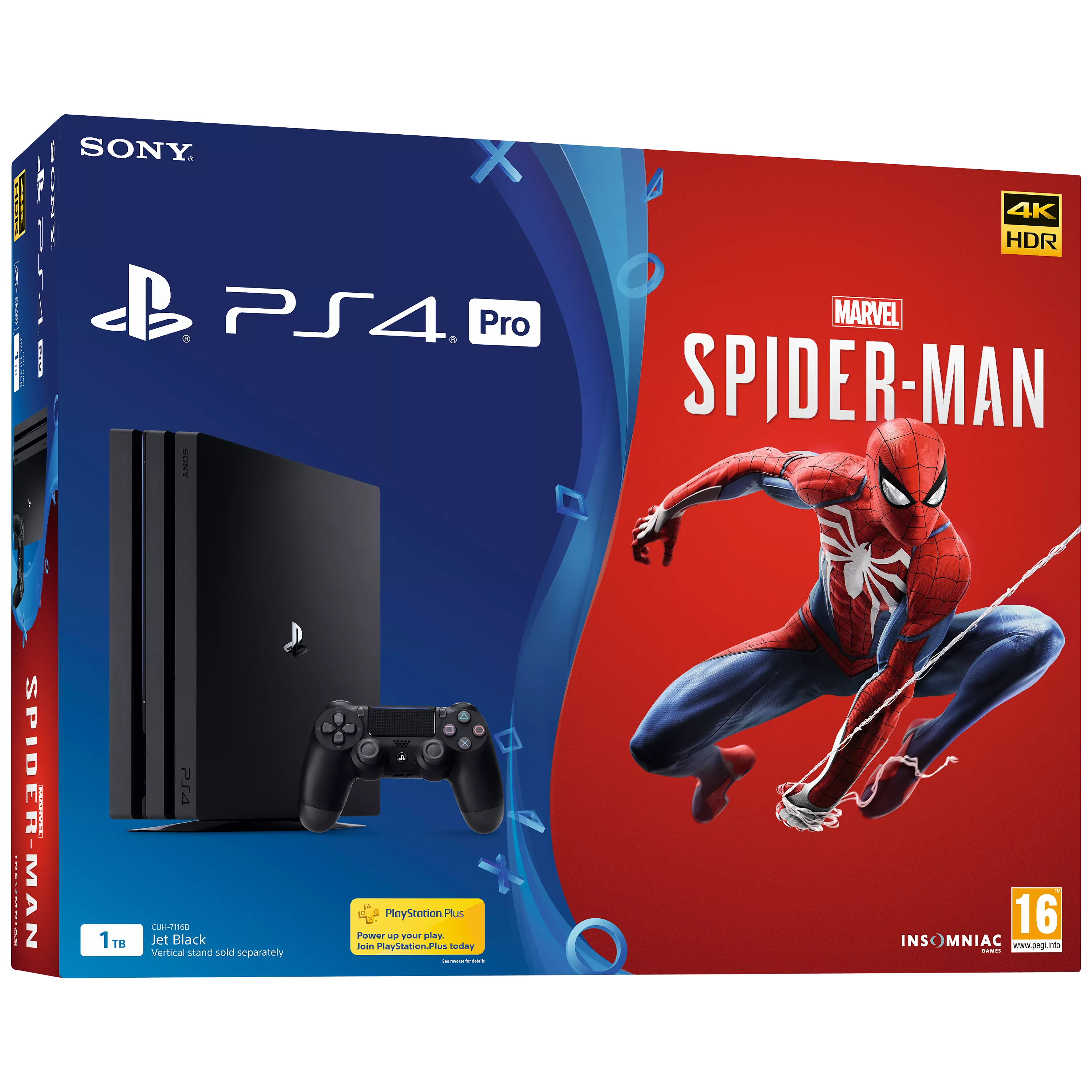 This spectacular bundle includes: Sony PlayStation 4 Pro, 1TB console with DUALSHOCK 4 controller – both in black and a copy of Marvel’s Spider-Man game on Blu-ray.