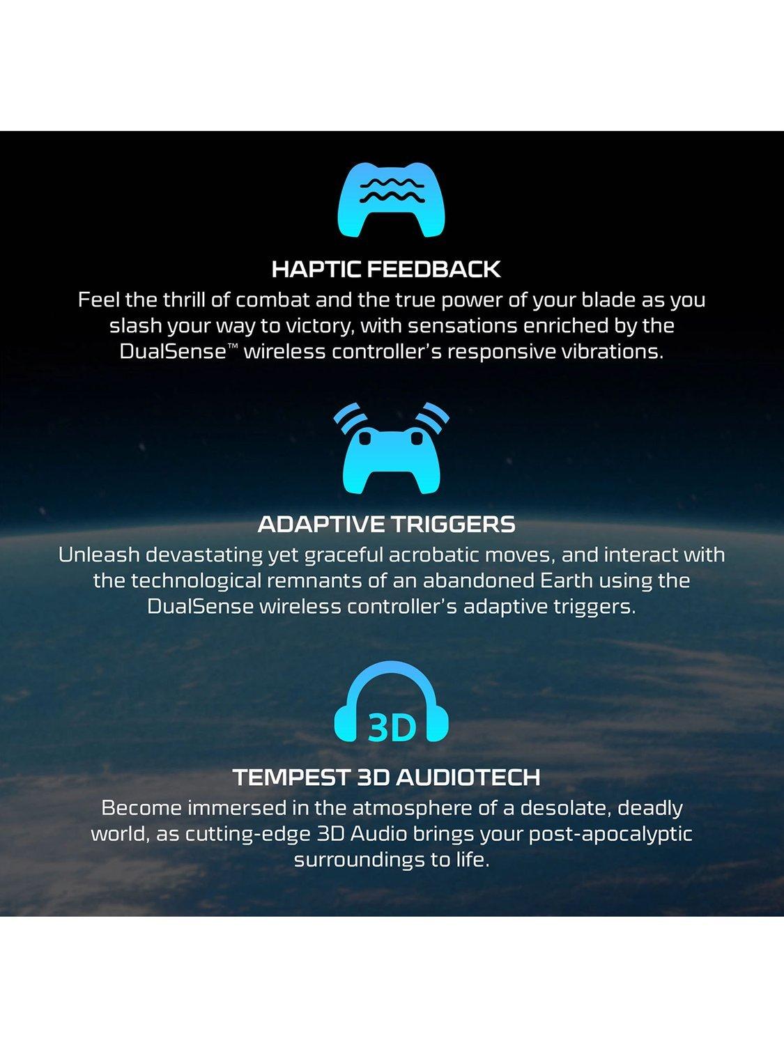 Become immersed in a highly detailed post-apocalyptic world that blends beauty and horror to spectacular effect. Explore breathtaking science fiction-inspired environments, brought to life via the graphical power of PS5.
