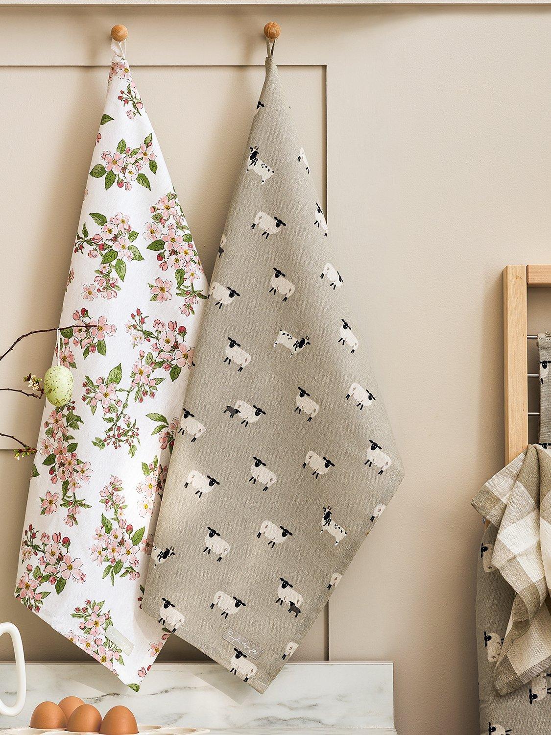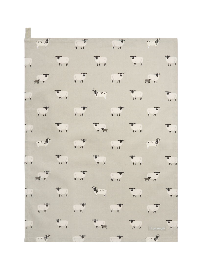 Sophie Allport's Sheep tea towel in a neutral tone is ideal in any country kitchen and will make your drying up a bit more enjoyable. The Jacob and Suffolk breeds of sheep feature in this design. Made of cotton, this tea towel is machine washable for easy cleaning.