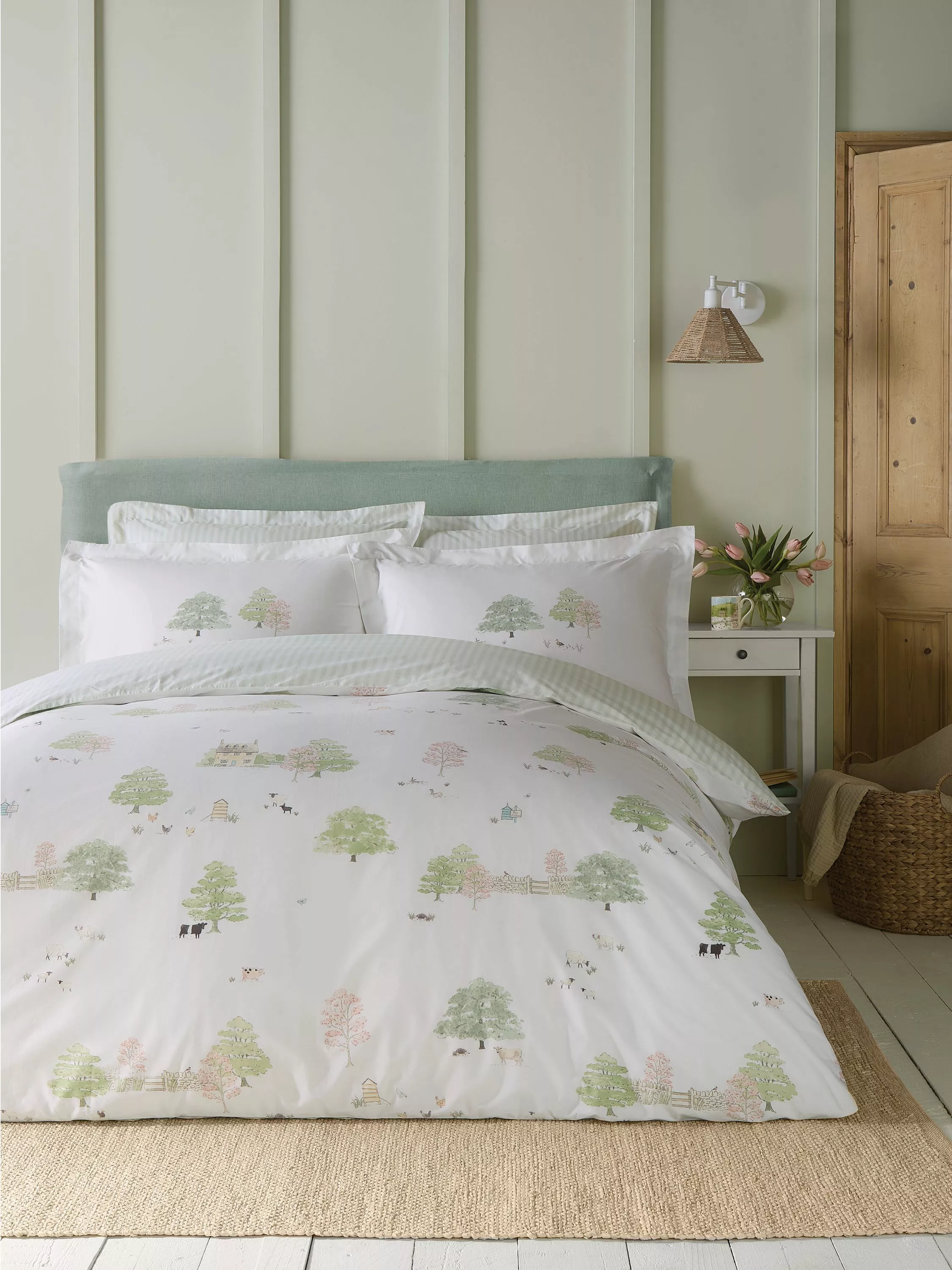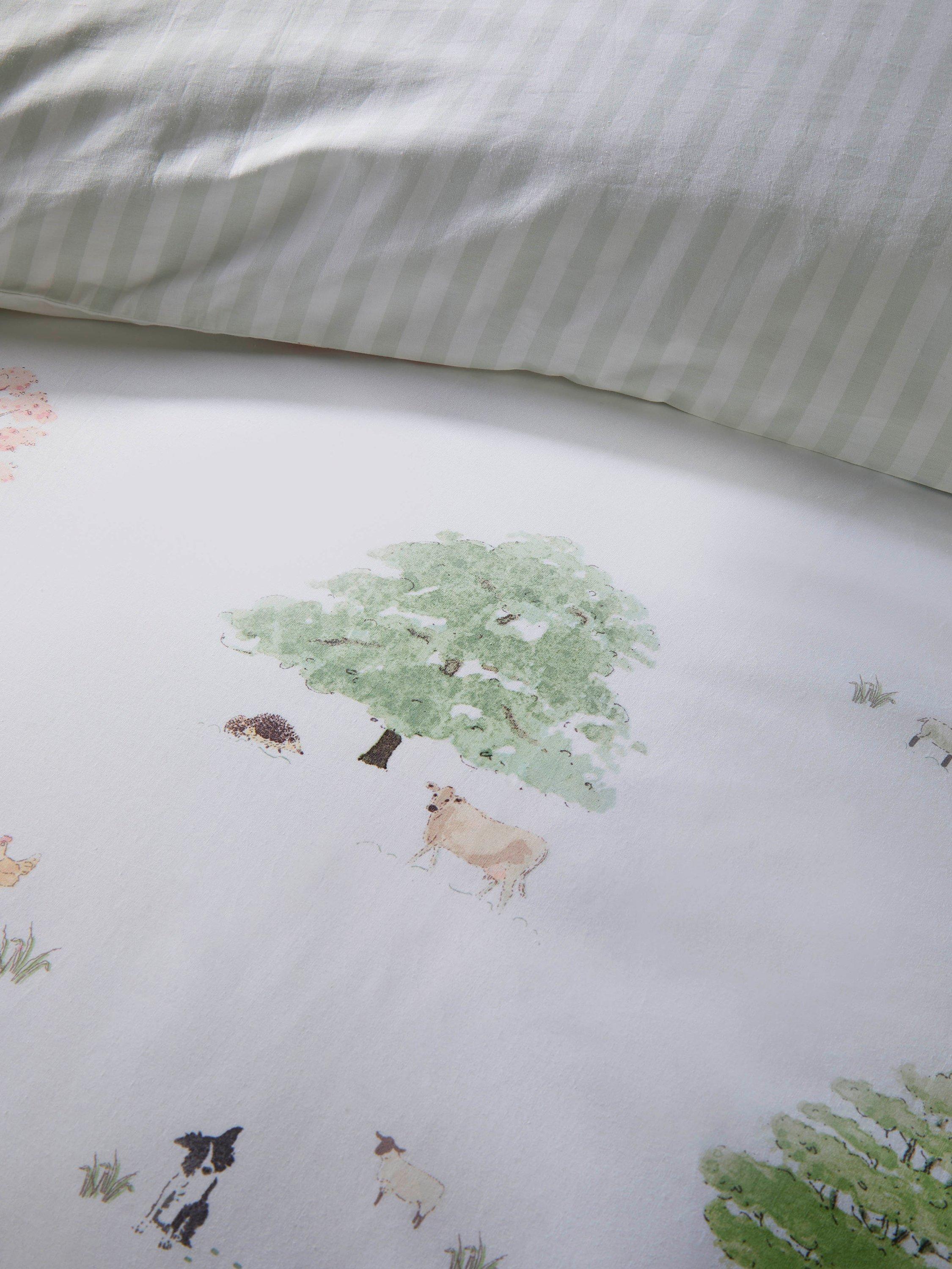 Bring the beauty of the countryside into your bedroom with the Spring Cottage duvet cover, capturing the essence of new beginnings and the freshness of spring. Featuring Sophie's charming illustrations of a cottage nestled in the countryside, surrounded by blossoming trees and playful baby animals, this bedding adds a delightful touch of nature to any space. It's the perfect way to refresh your room with a hint of spring charm.