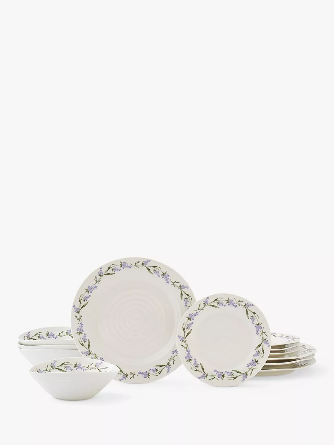 Beautifully presented in a lavender-coloured gift box, this dinnerware set is from the Lavandula collection by Sophie Conran for Portmeirion. The set includes four dinner plates, four side plates and four cereal bowls.