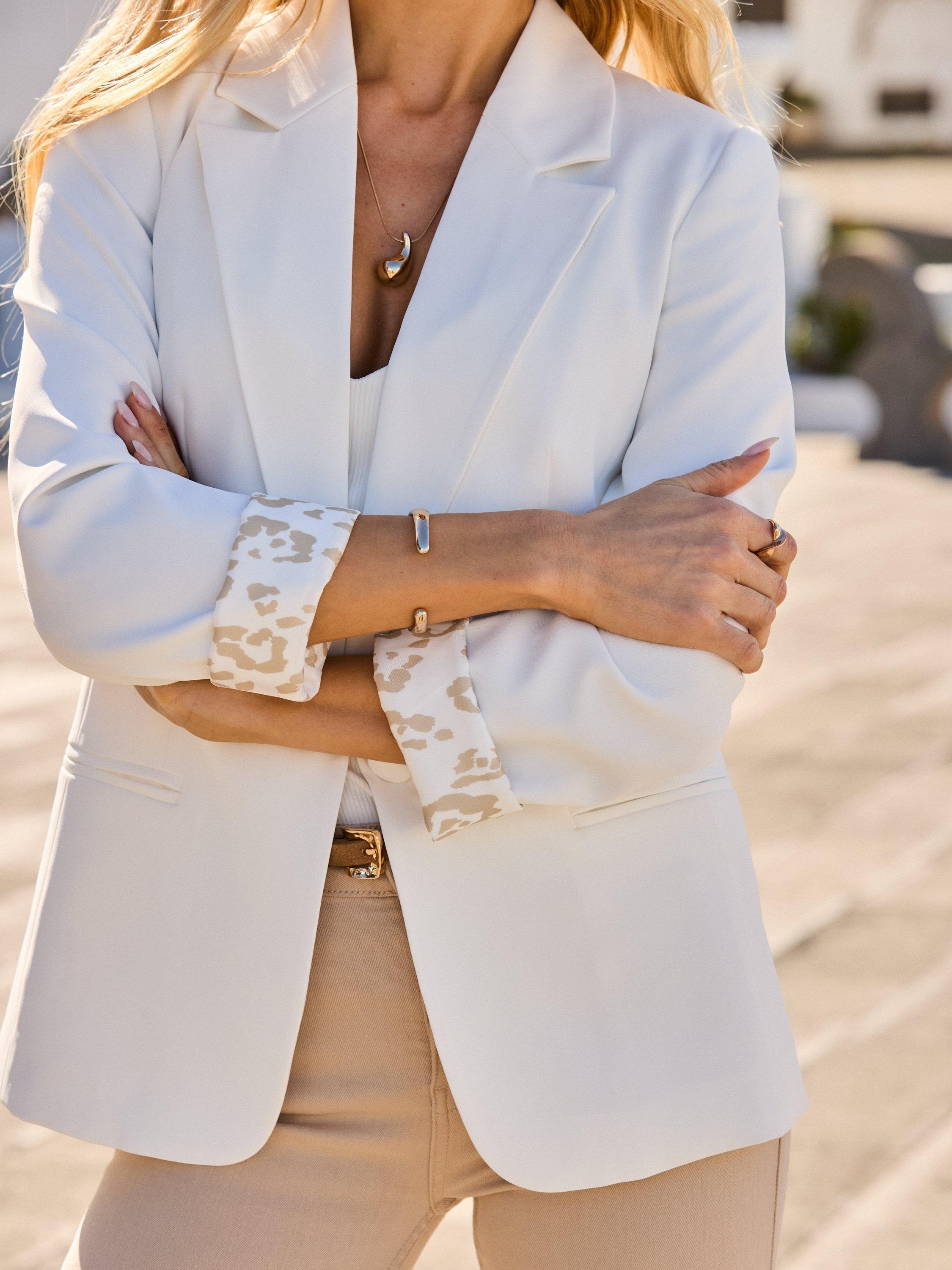 An elegant layering piece for smart events, this blazer by Sosandar is single breasted with a leopard print lining, and cinches in at the waist for a flattering fit.