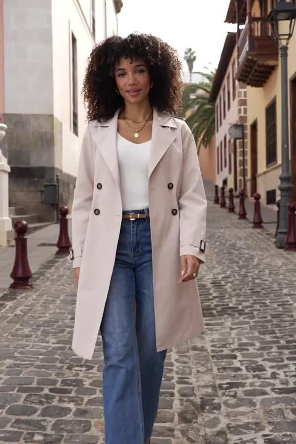 A regular-length trench coat, designed with a cinched waist. Clever details and a classic collar blend practical warmth with standout style, making it a versatile companion for your day-to-day plans.