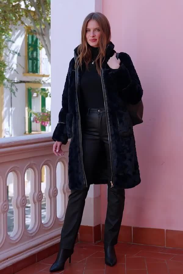 This Sosandar longline borg coat keeps you cosy on winter days, offering extra warmth with a high neck and regular fit. Finished with a faux leather trim, it's easy to style adding a confident touch to your cold-weather outfits while keeping comfort in mind.