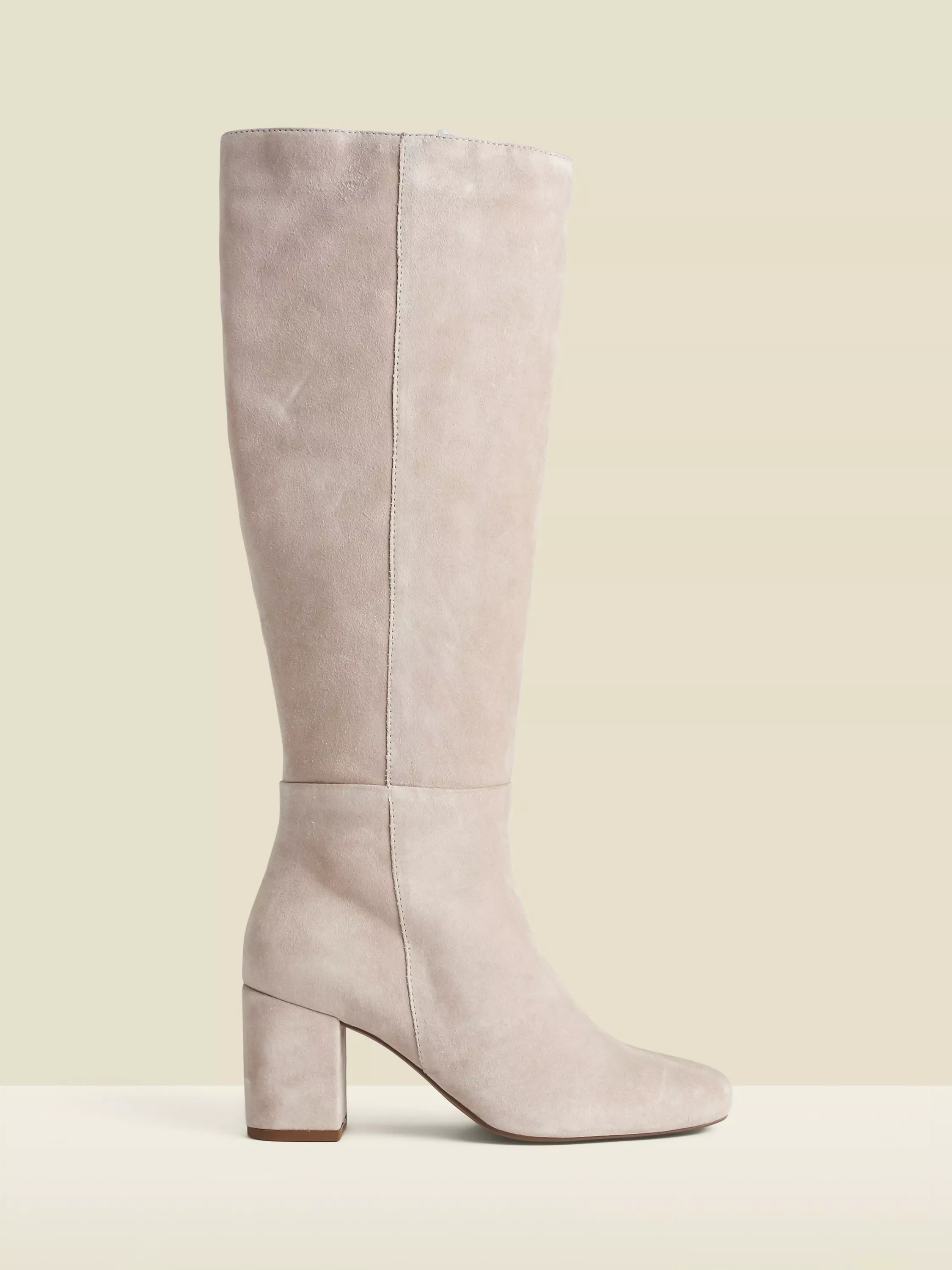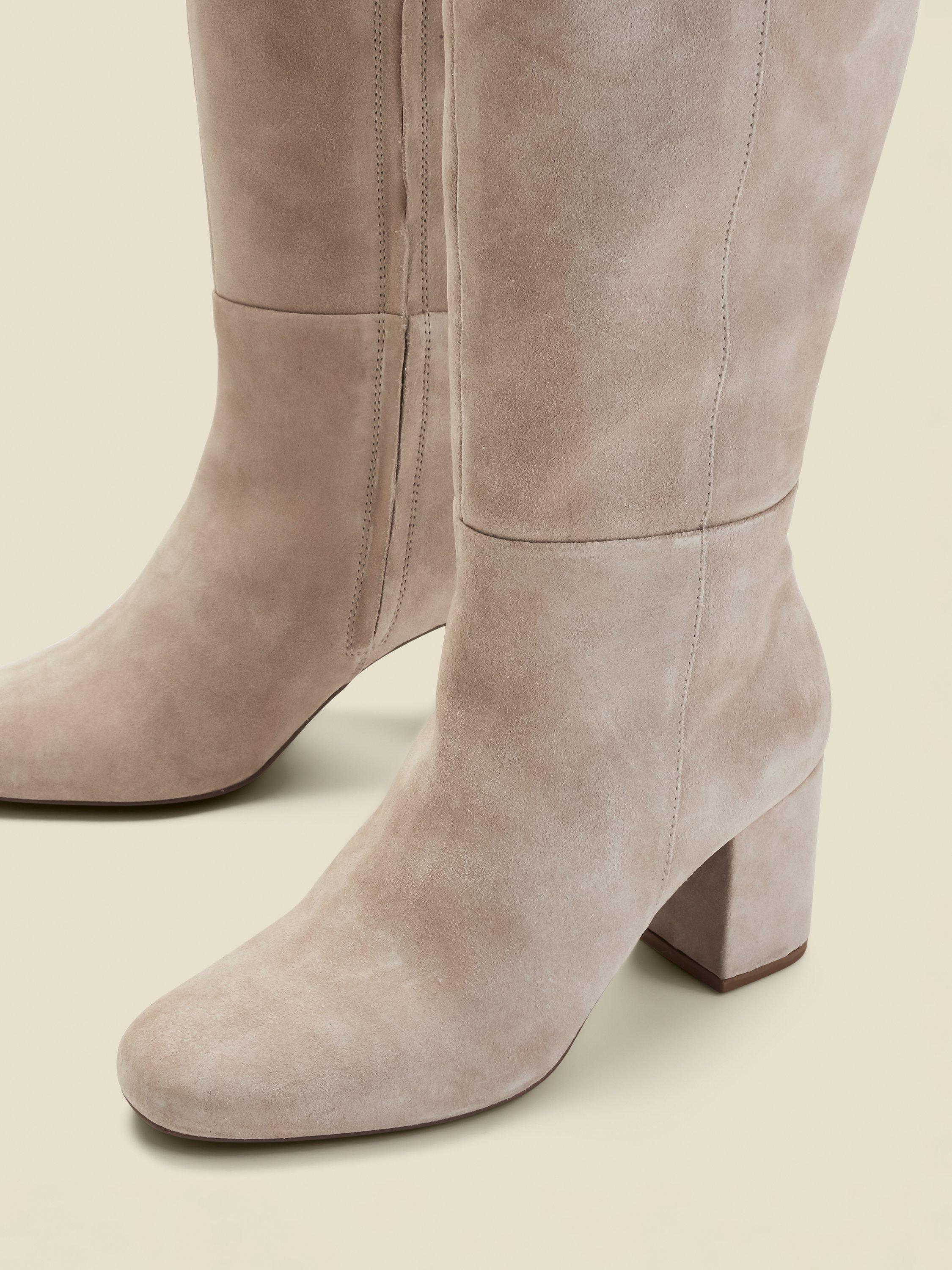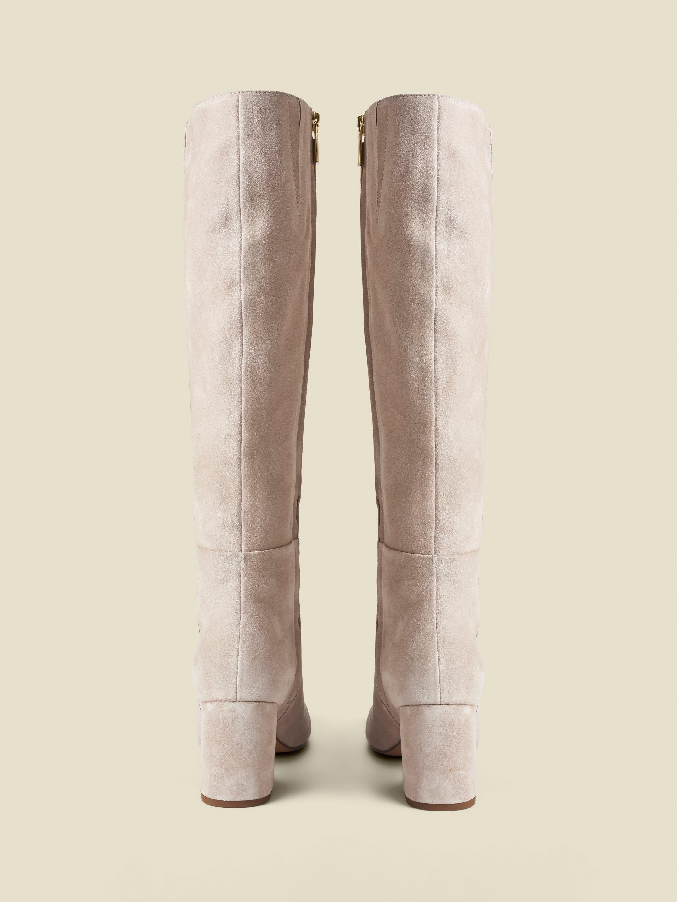 Confidently conquer meetings or meet-ups with these suede knee-high boots. The sturdy block heel gives you lift and balance while the easy zip fastening makes dressing simple. Designed for comfort, style, and that clever touch of understated charm.