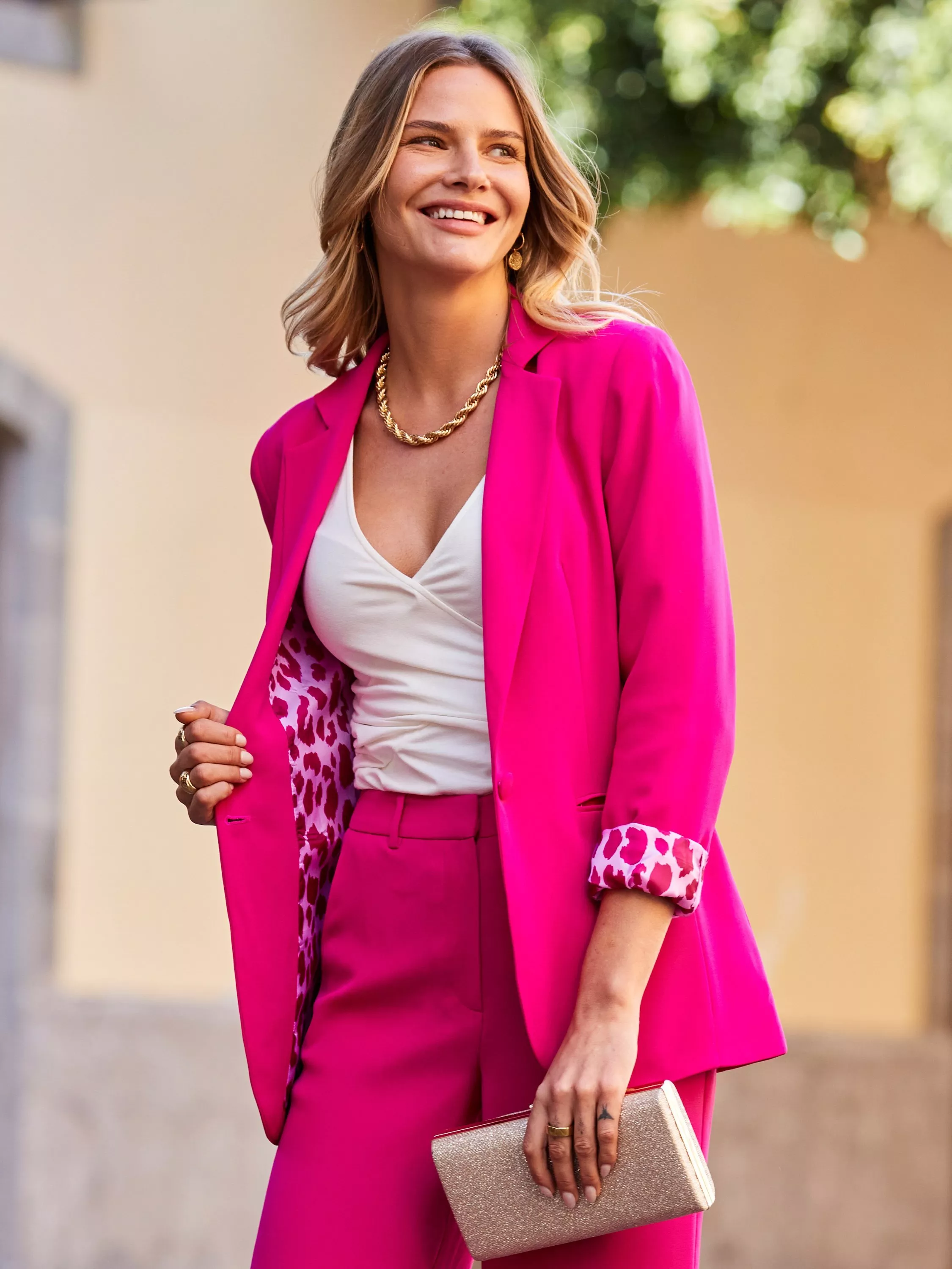 An elegant layering piece for smart events, this blazer by Sosandar sits at the hips for practical coverage. Tailored to a classic design, it's designed with a leopard print lining for a pop of personality.