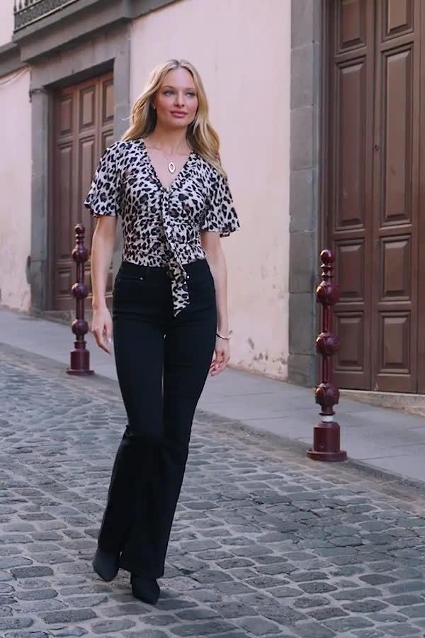 Detailed with placement ruching, this blouse from Sosandar features a classic v-neck, short sleeves and is covered in the past few season's most-loved print - leopard.