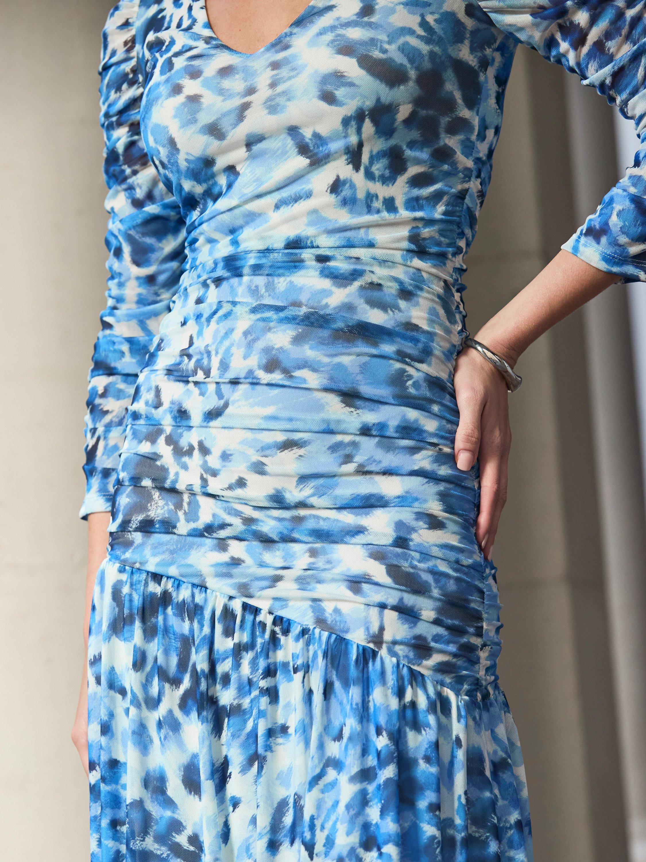 Calling attention to the beauty of your natural form, this midi ruffle detail dress from Sosandar is crafted from a mesh blend of fabrics. Effortlessly flattering thanks to a fuss-free v-neckline and three quarter length sleeves, it receives a loud update with its bold leopard print.