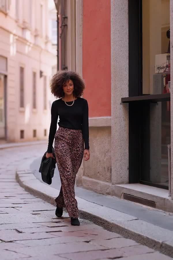 Trending trousers, cut to a comfy-but-chic wide-leg silhouette. Crafted from soft and drapey fabric, sitting high on the waist for a flattering fit. Leopard print is a neutral - they'll go with everything, think knits and courts for the 9-5 a sexy top and heels for nights out.