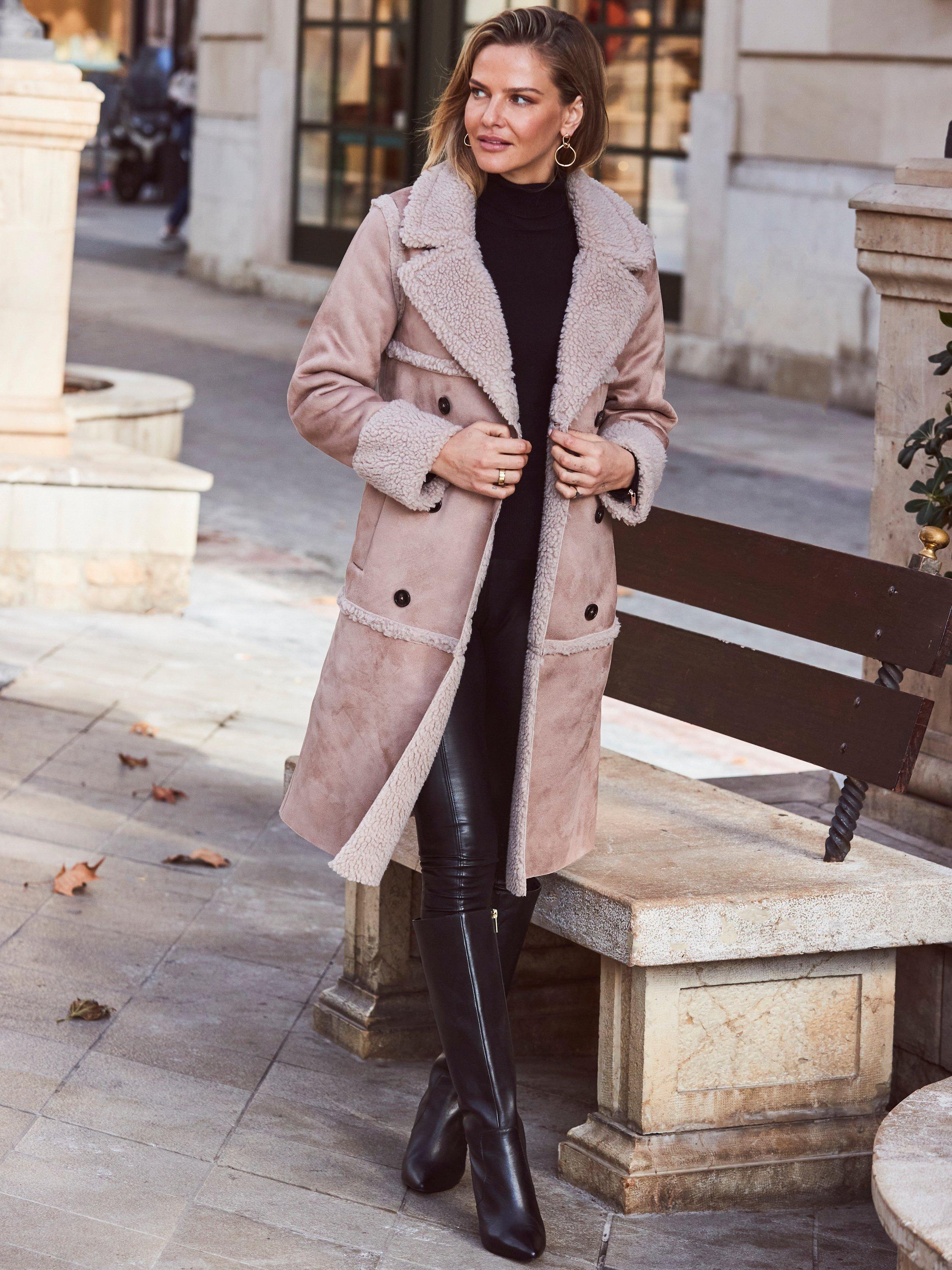 All about texture, this faux fur coat from Sosandar comes in a flattering longer length.