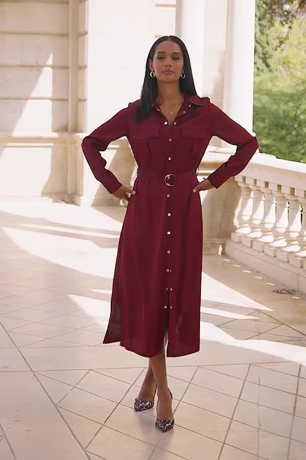 This utility midi shirt dress blends smart tailoring with easy comfort, making your daily routine feel brighter. The collared neckline and long sleeves give you all-day versatility, while its timeless shape is great for wherever you need to go.