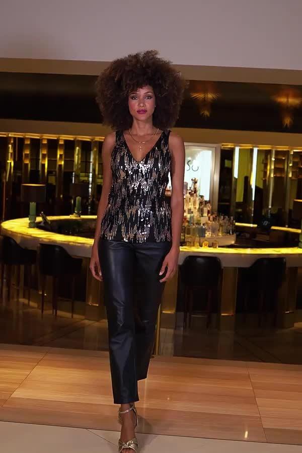 Sequins are always a good idea. A stunning scattered embellishment, figure-hugging fit, sexy deep v-neck suits big and small busts. Slip it under a stylish suit or take jeans and a nice top to new levels.
