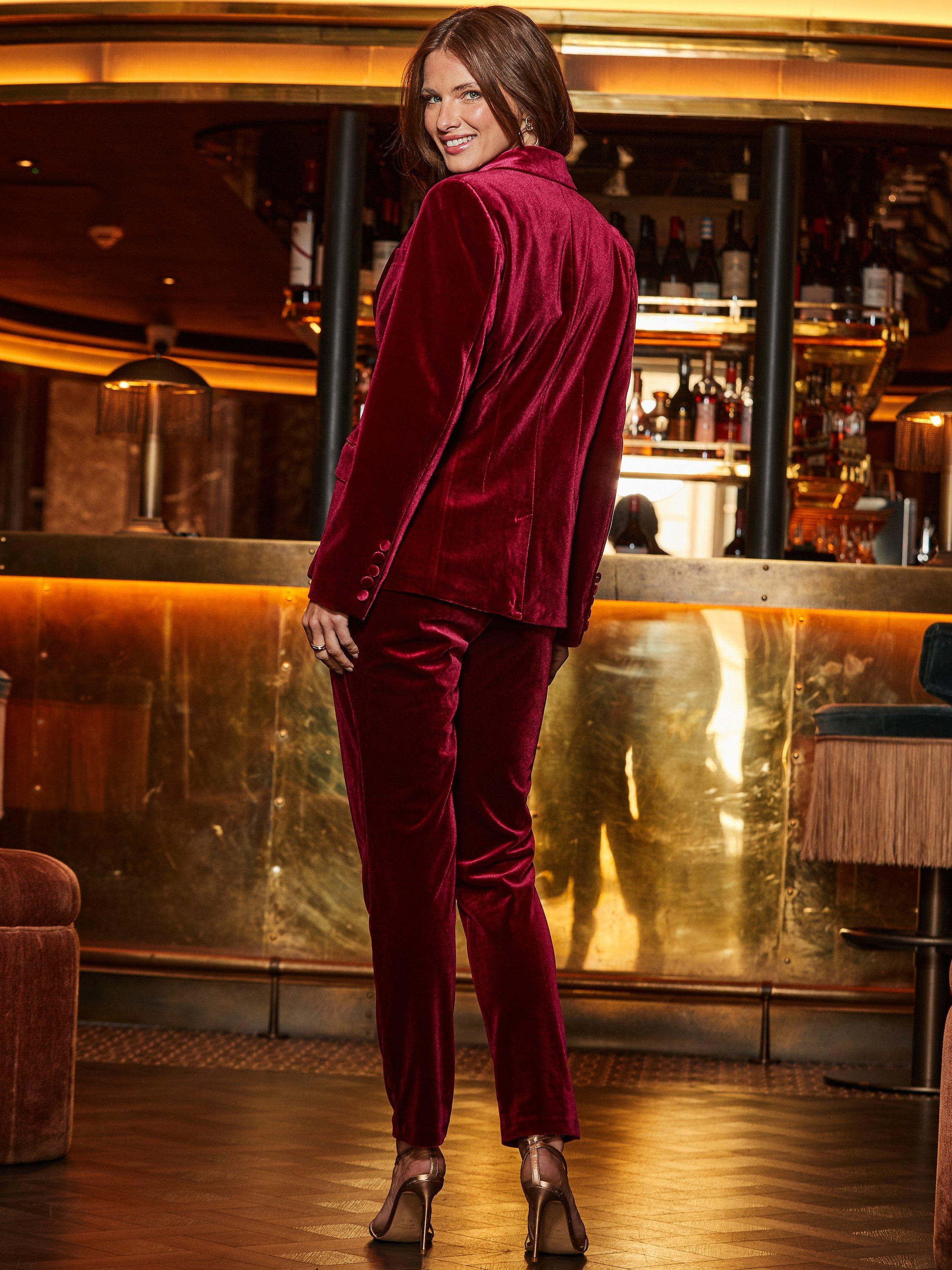 This regular-cut single-breasted velvet blazer is tailored for evenings when you want to feel sharp yet at ease. Its neat collar and long sleeves pair well with your favourite outfit, bringing a touch of plush polish to your plans.