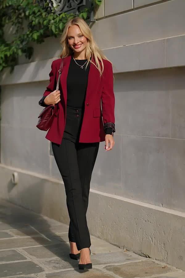 SosandarSingle Button Blazer, Burgundy