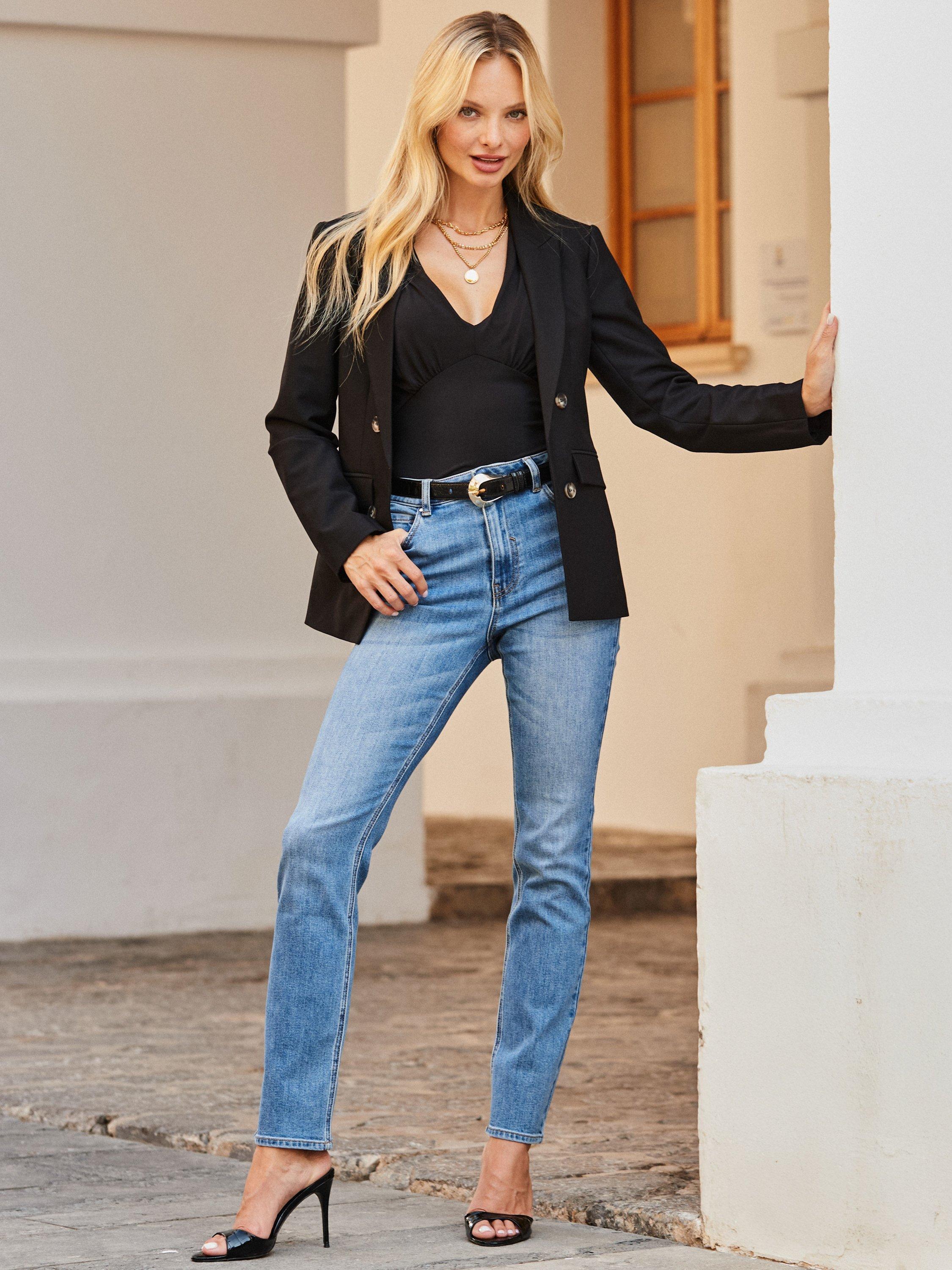 Slim-leg jeans from Sosandar. Sculpted from denim with a comfortable mid rise and a zip fly, they fall to a regular length.