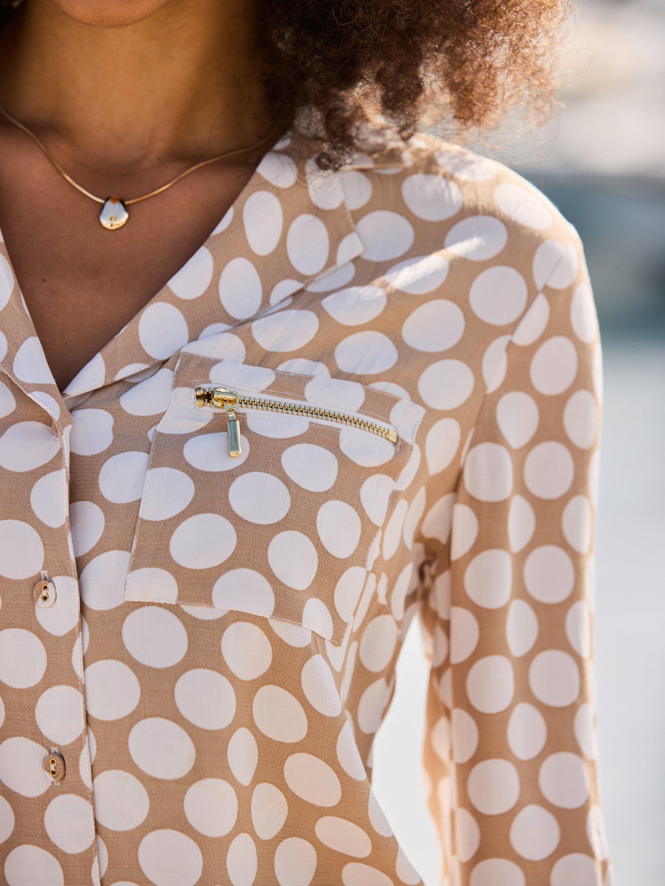 A utility shirt by Sosandar adding a distinctive twist to your day. With a collar neck and long roll-up sleeves to adapt your style and fit, it's cloaked in spots.