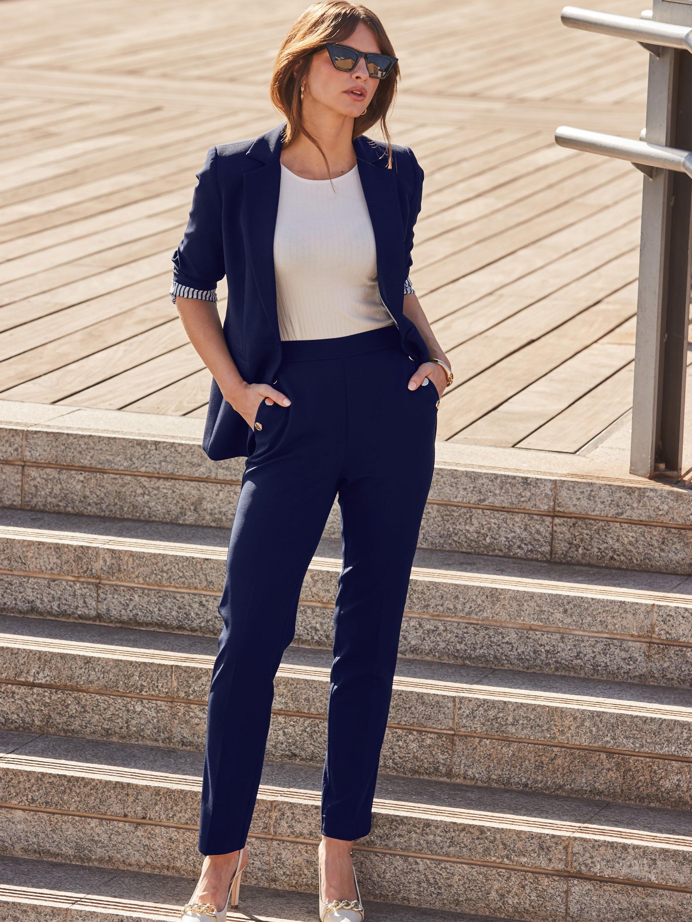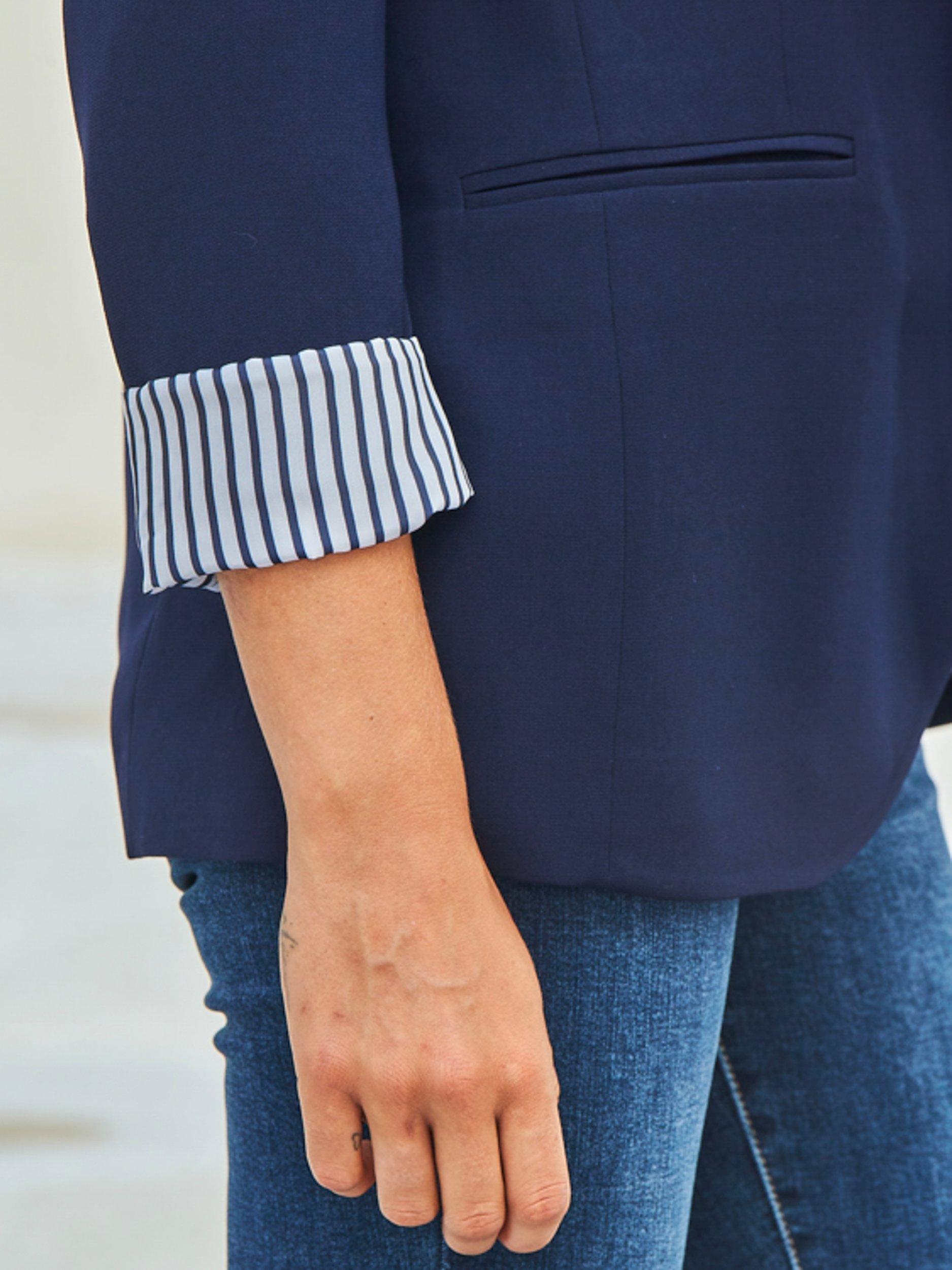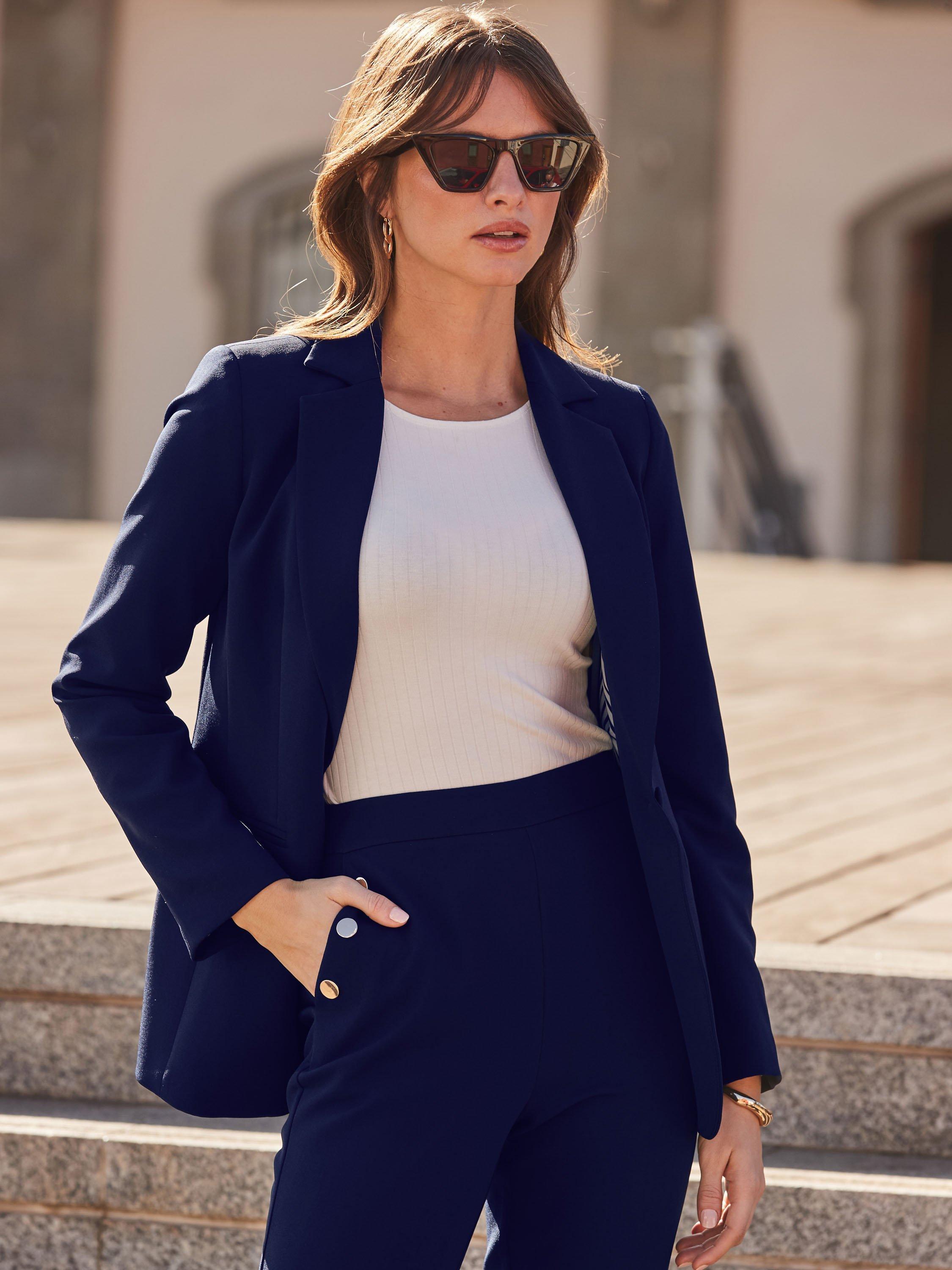 A smart outerwear piece that will pull any look together, this single-breasted blazer from Sosandar features a striped lining for a flash of personality.