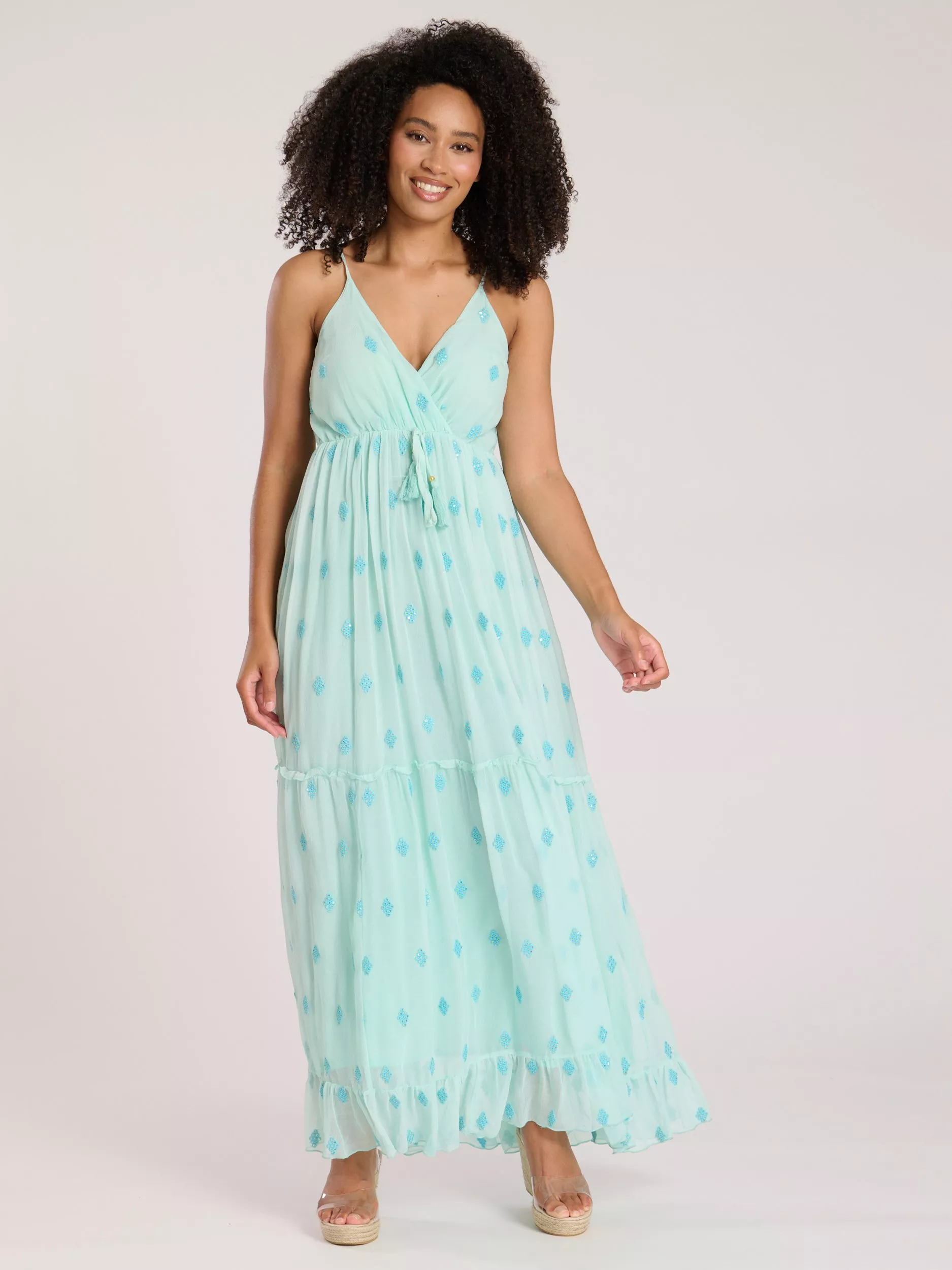 South BeachSequin Detail Cami V-Neck Maxi Dress, Mint
