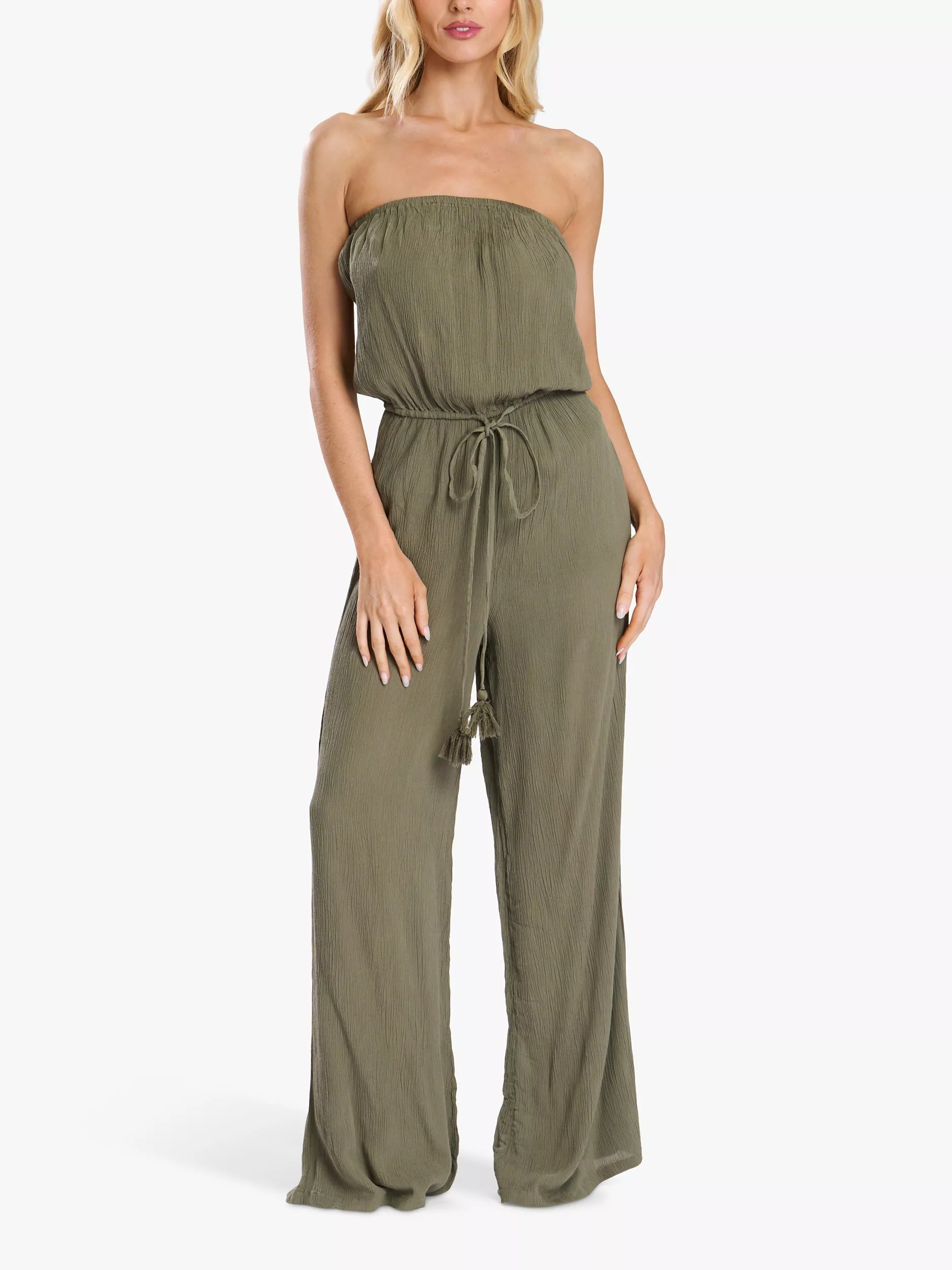A staple piece for your holiday wardrobe all year round. This viscose strapless jumpsuit from South Beach is made from floaty, breathable material and is complete with a drawstring waistband for the perfect fit.