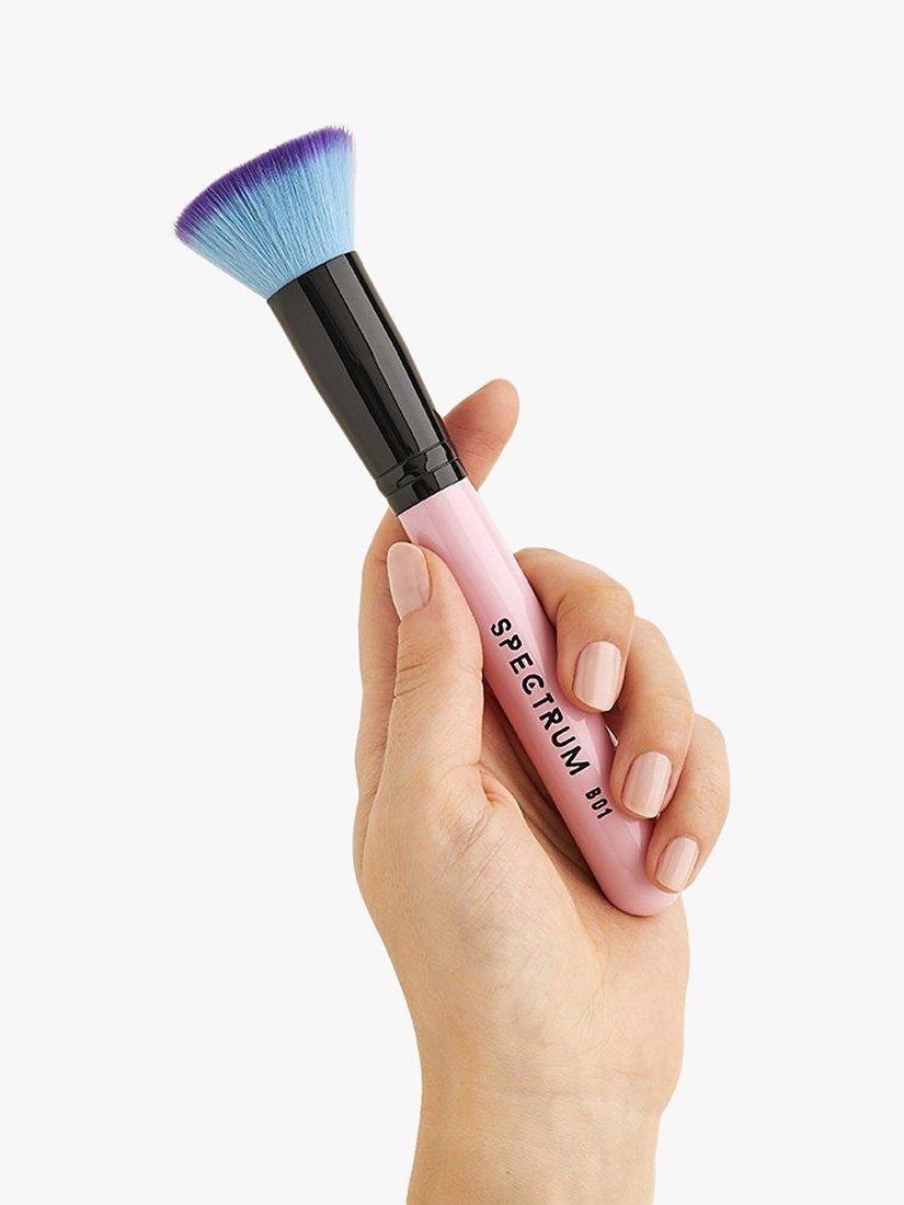 The densely packed flat top bristles will seamless buff and blend liquid, cream and powder foundation to an airbrushed finish. For best results, lightly dab foundation onto the desired areas of the face before blending outwards in small circular motions. For heavier coverage, lightly bounce the brush onto the face, pressing the foundation into the skin for real staying power.