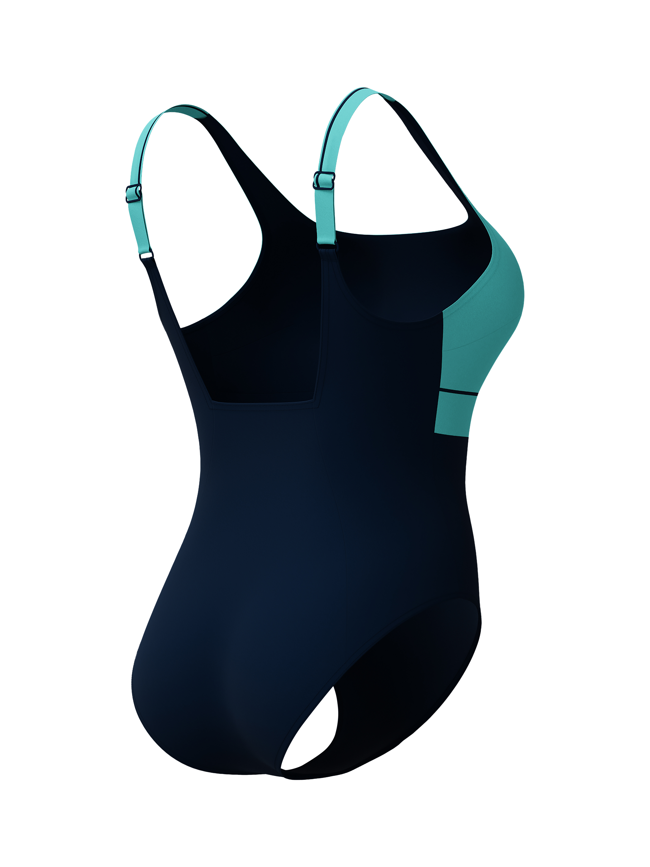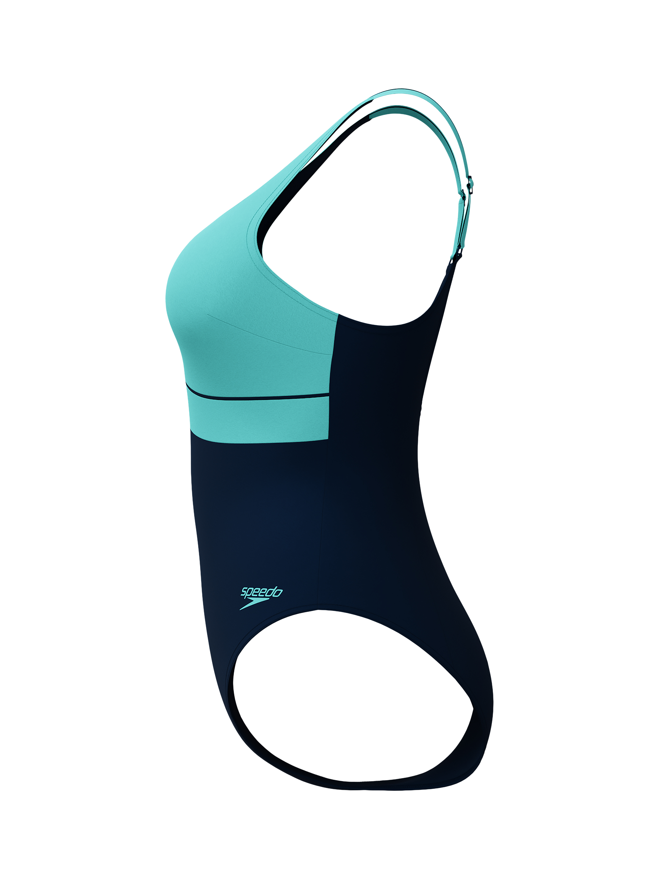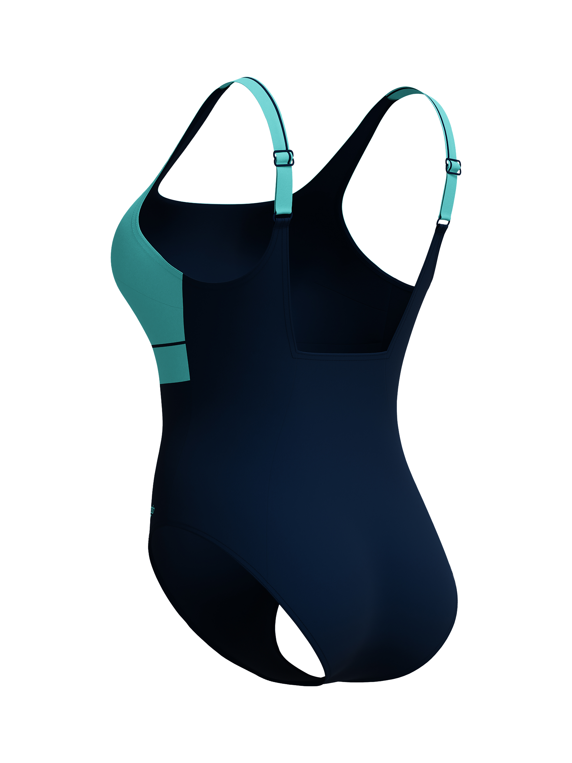 - The colour-block design of the ContourEclipse swimsuit draws the eye upwards to flatter your shape
