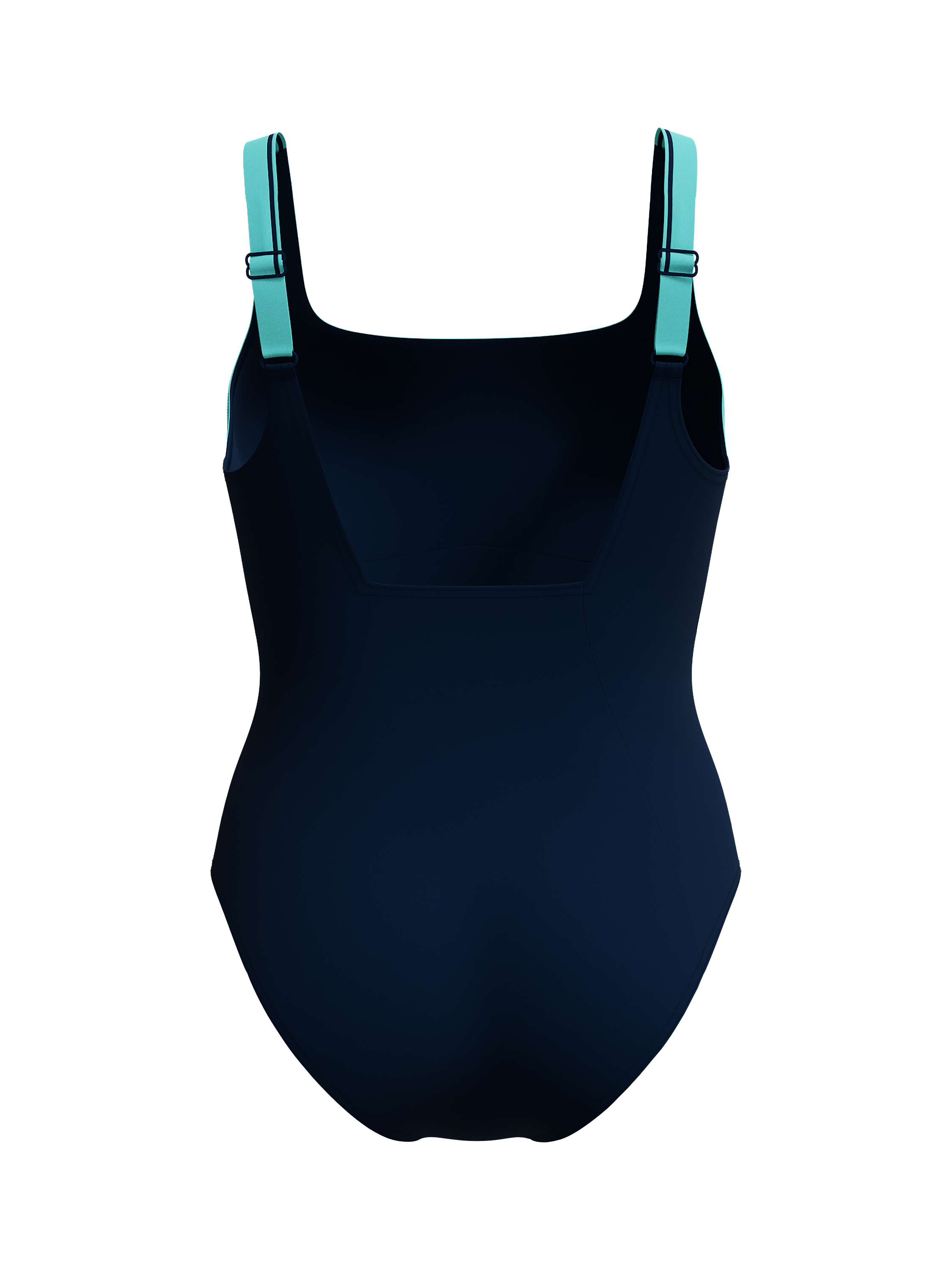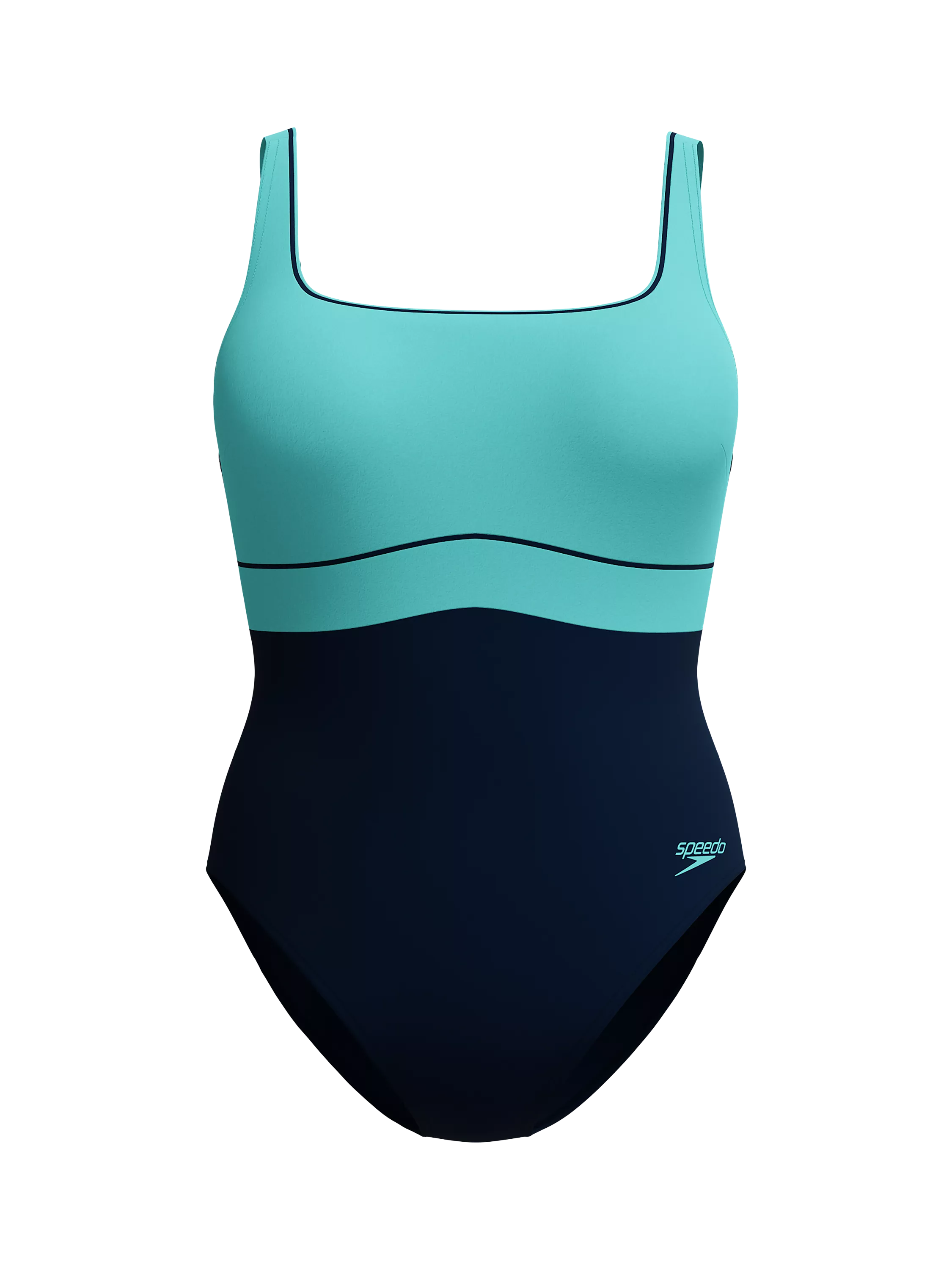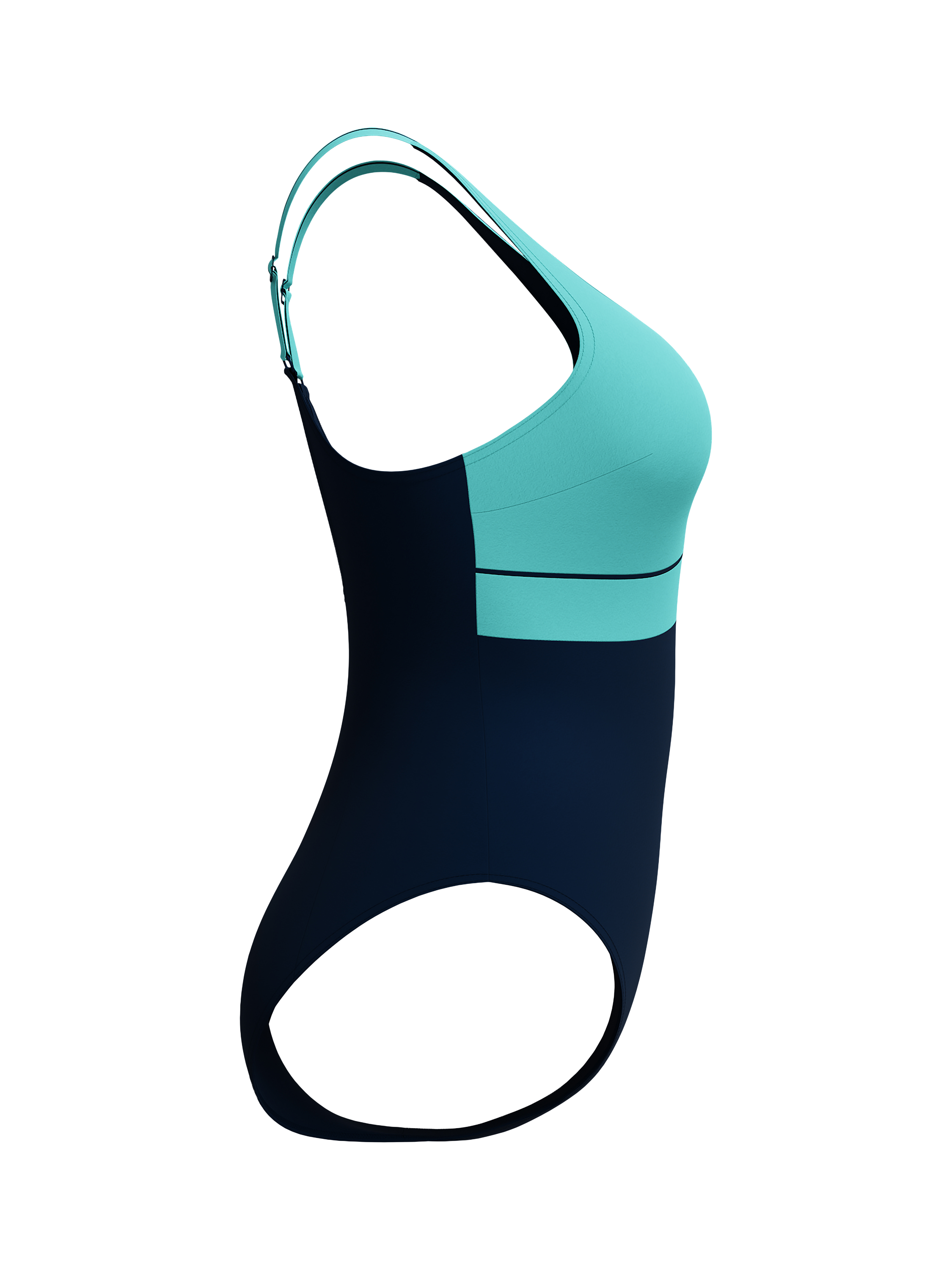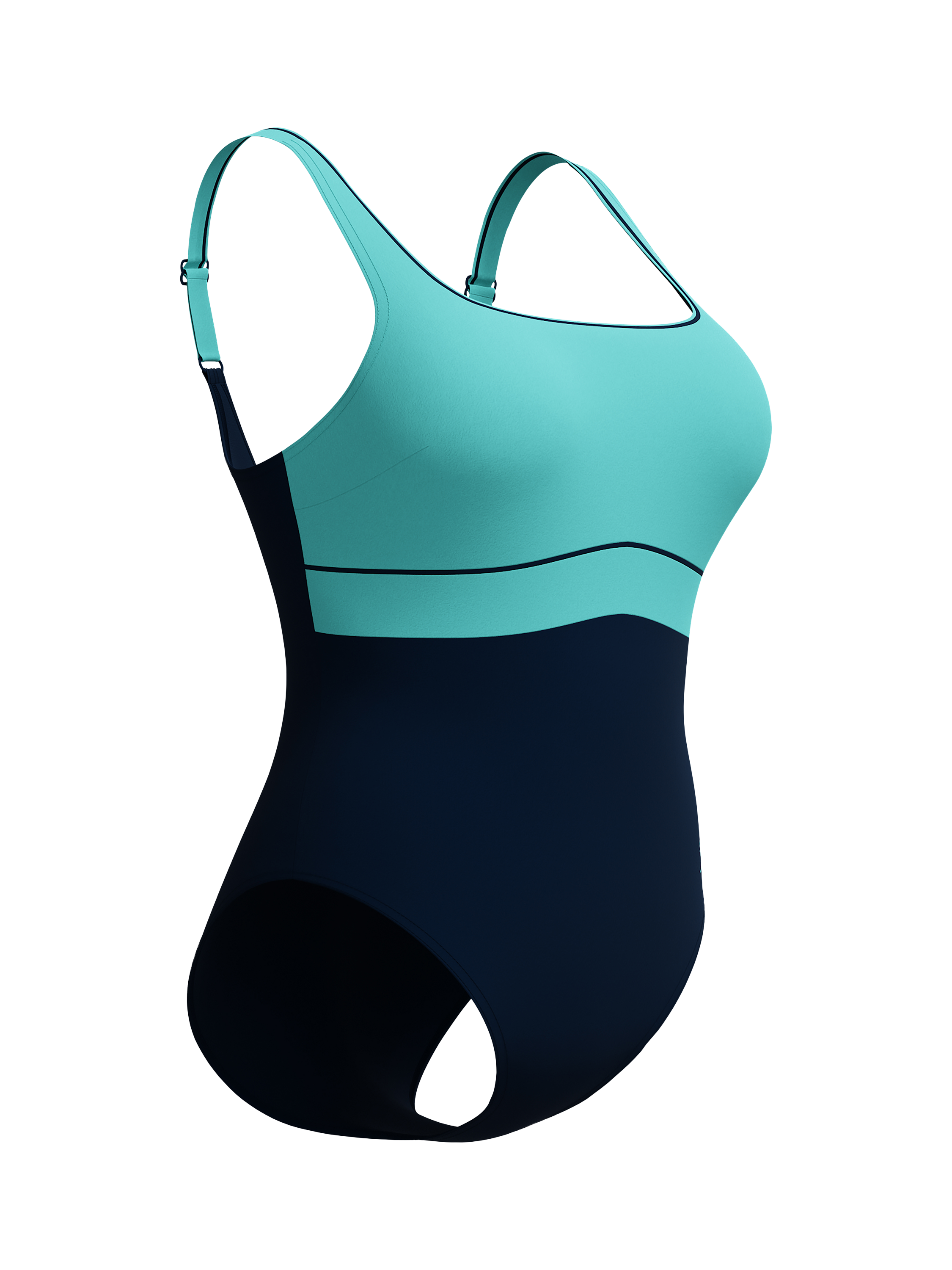 - The colour-block design of the ContourEclipse swimsuit draws the eye upwards to flatter your shape