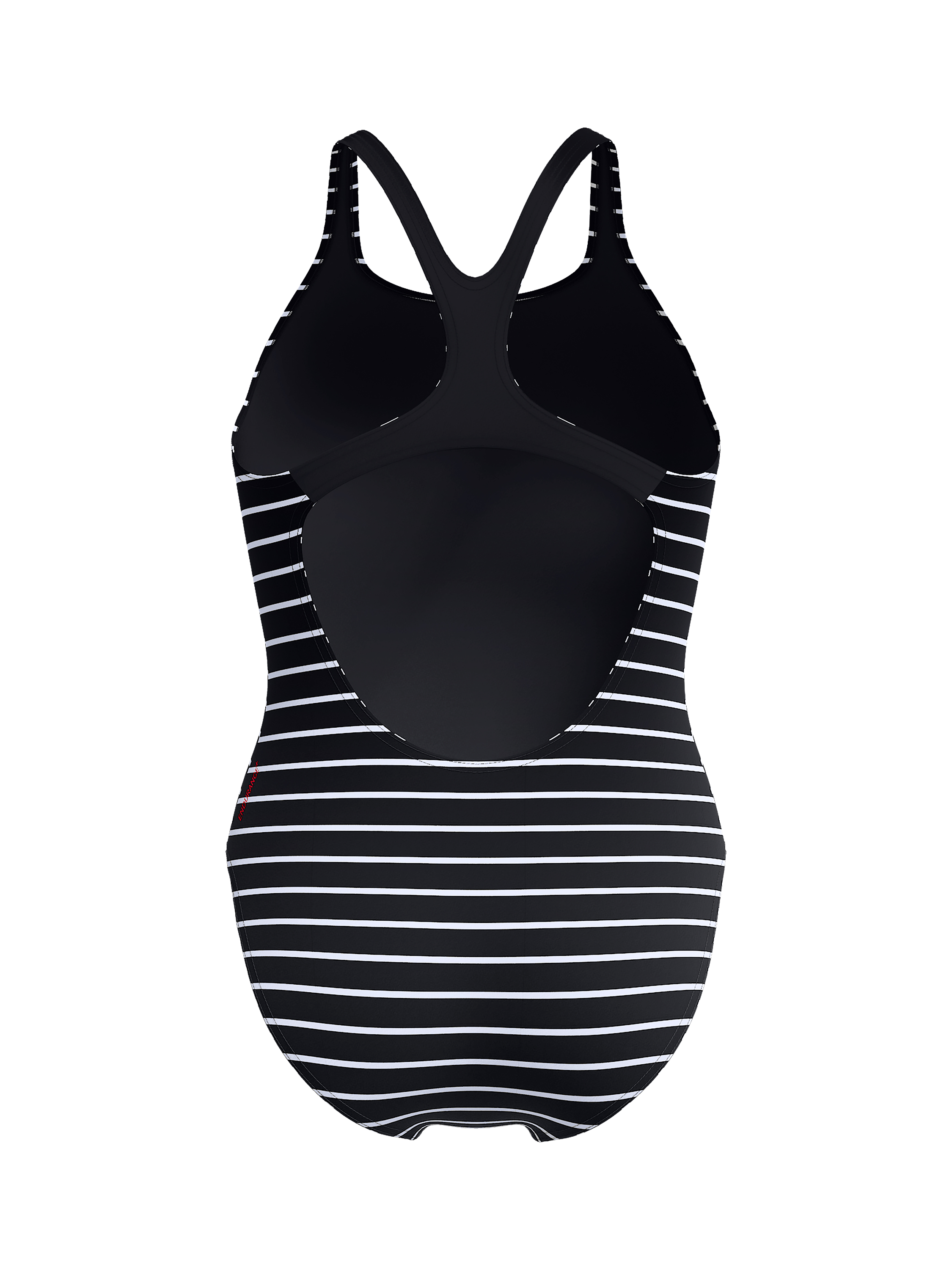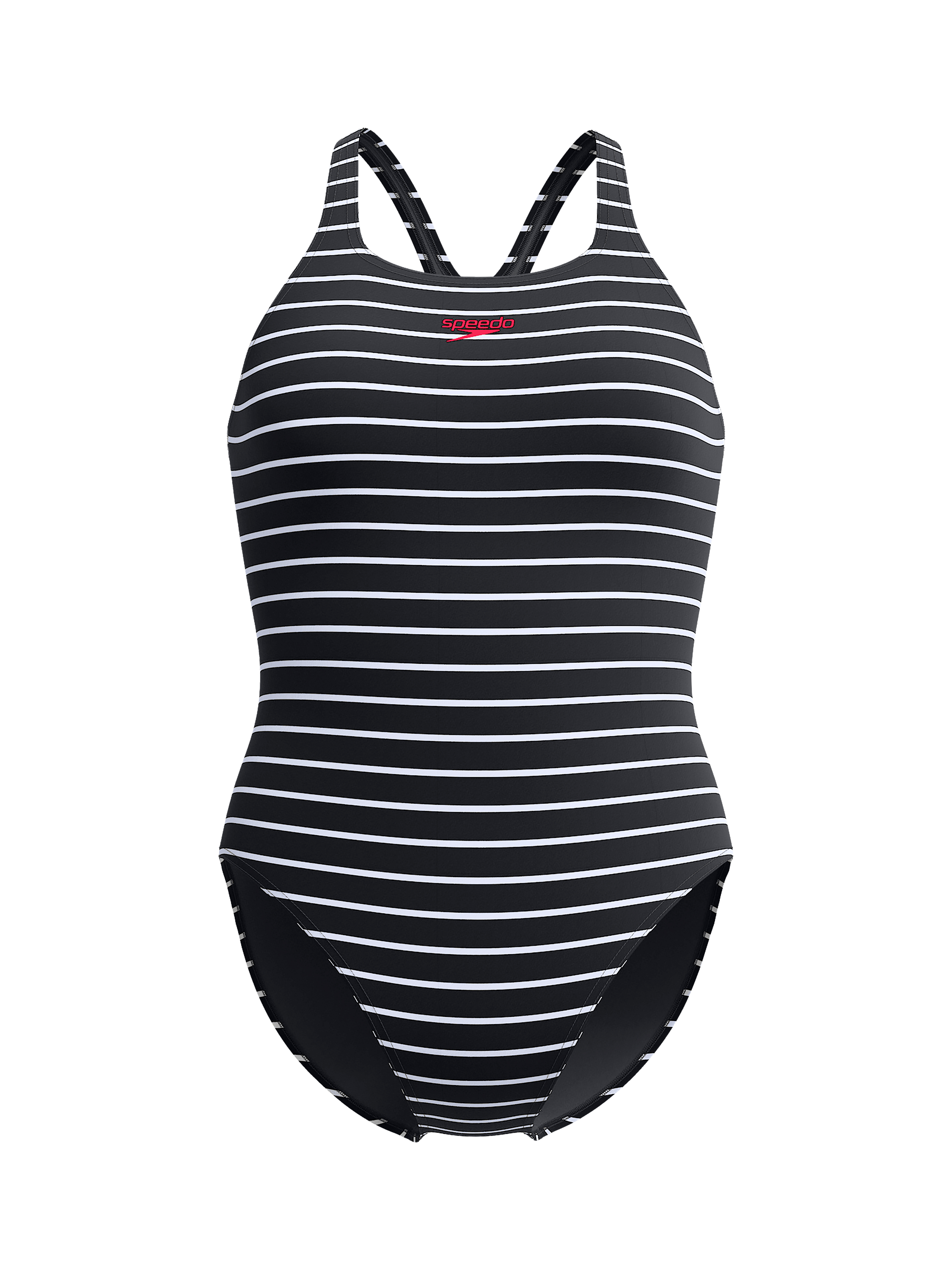 This printed version includes Speedo's take on the classic Breton stripe. Stay agile and comfortable in the medalist design, which aids shoulder movement and flexibility during training. Feel ready to go again in the quick-drying Endurance+ fabric, designed for durability with high chlorine resistance.
