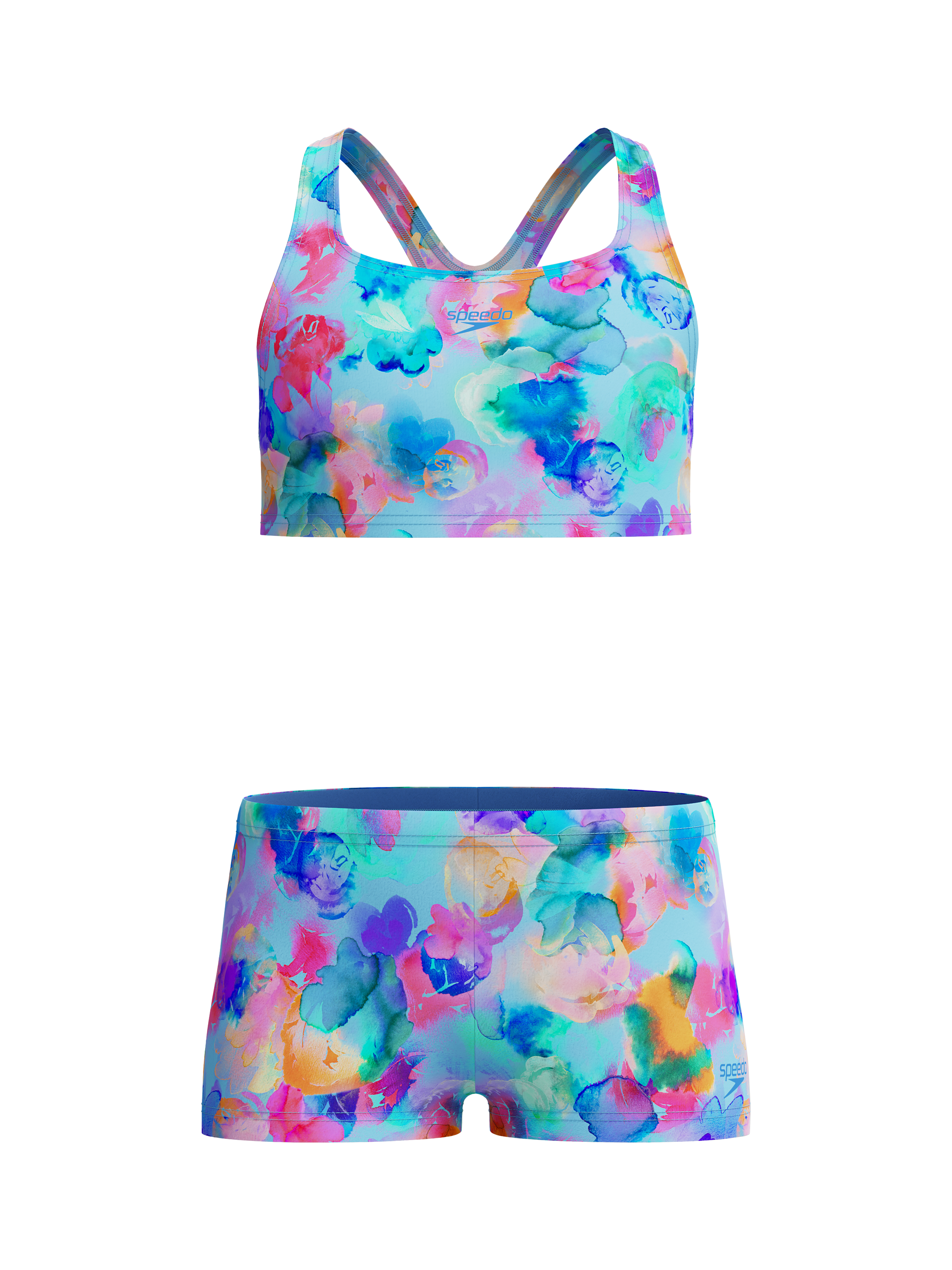 Made for all-day comfort and durability from chlorine-resistant Endurasoft fabric, this bikini includes four-way stretch and pilling resistance. The bikini bottoms offer classic coverage and include an internal drawstring for adjustability, while the racerback bikini top allows young swimmers to move freely.