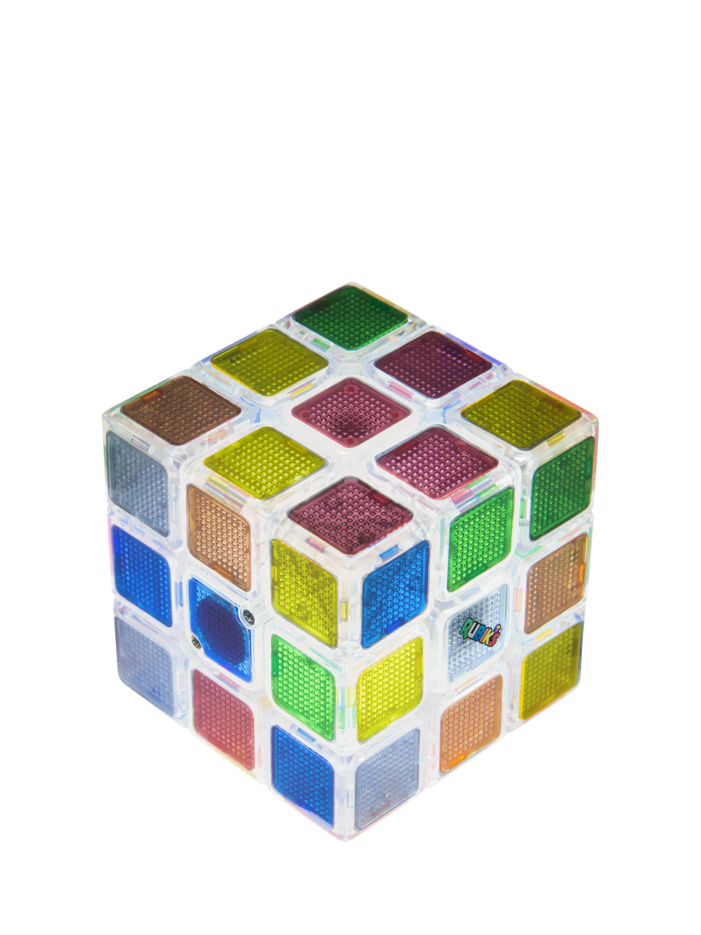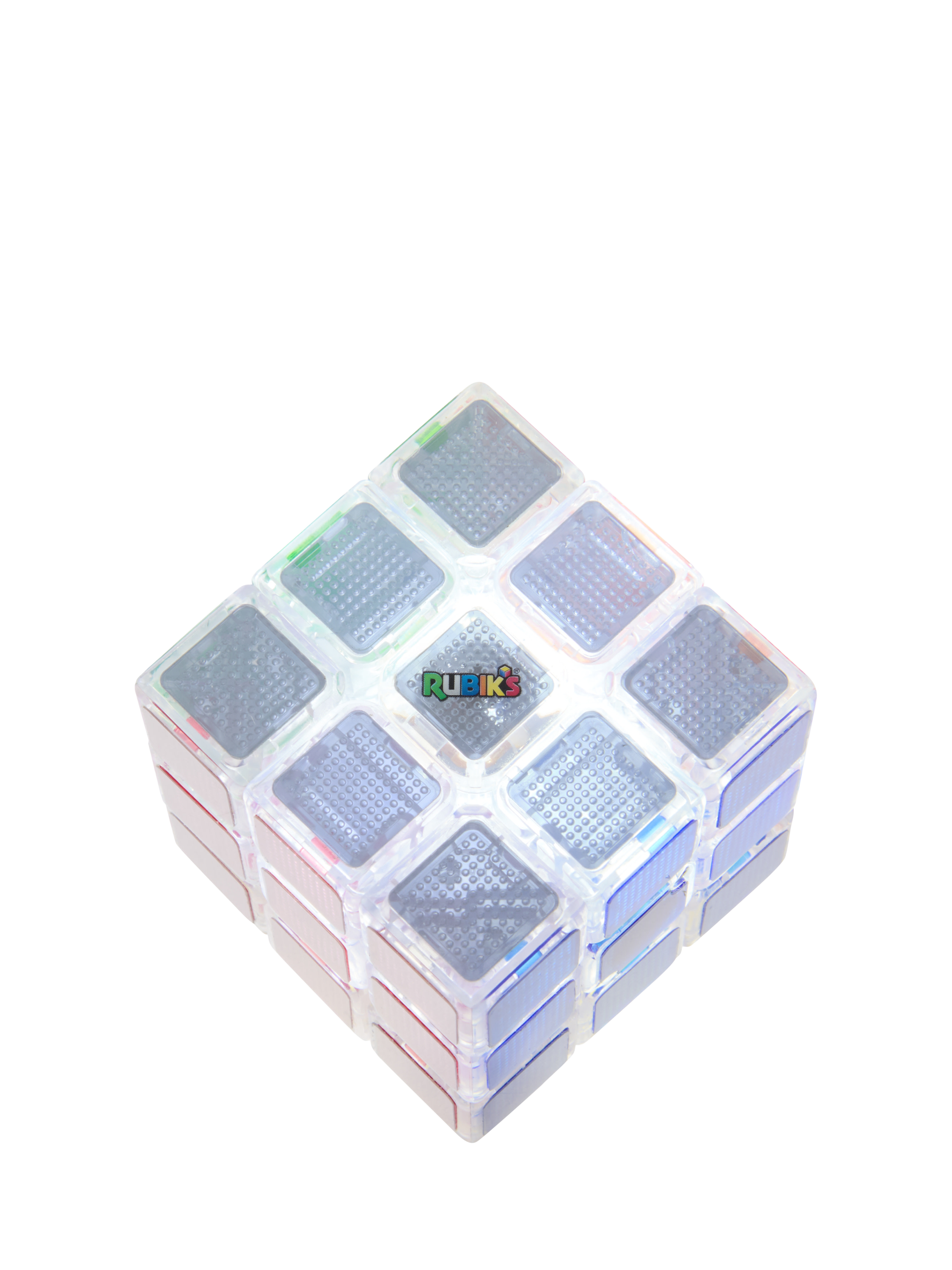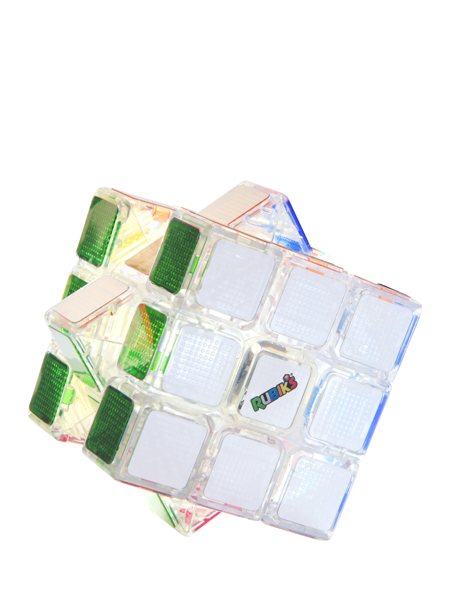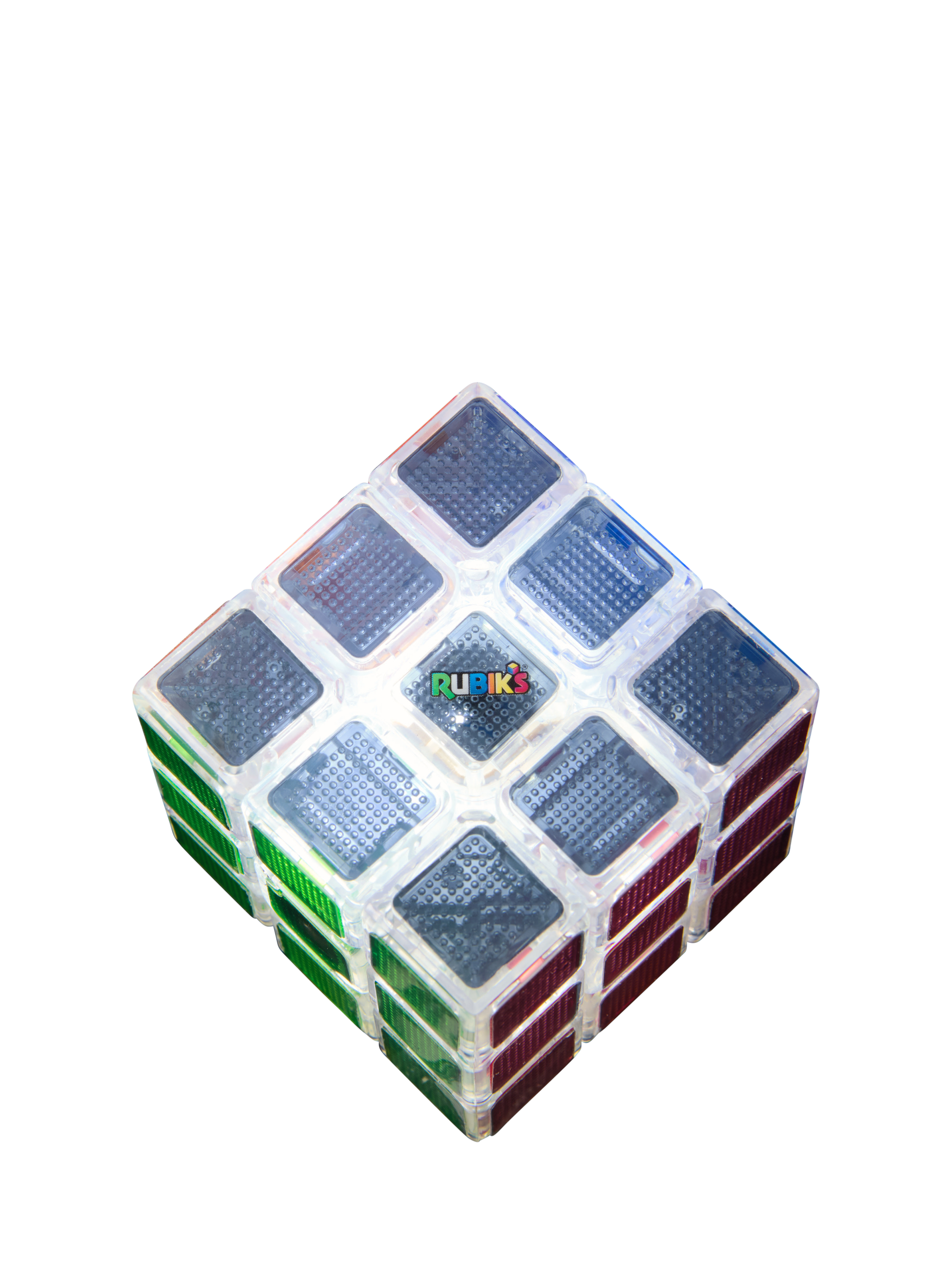 Start by scrambling the Cube, then press the logo button to activate the dazzling light inside to reveal the colours. Race to solve while time ticks down and the pulsing light intensifies until it turns off. Press the logo as many times as needed to add time to the clock or hold to reset for another round once solved.